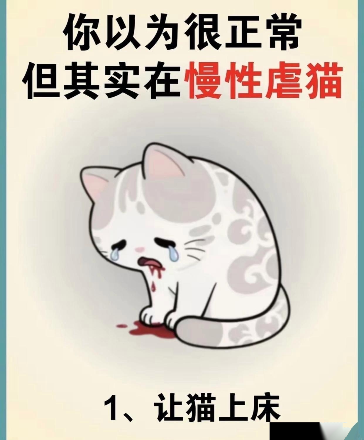5、看了别的评论说因为猫猫咬蹬踹并且出现伤口才会摔它的,我想说,别为你自己的暴力找借口再怎么样也不能去摔它,爪子可以剪,和它玩可以用逗猫棒,撸猫的时候姿势正确,猫也是有感情的它也懂它不是白眼狼,它不是人你生气可以吼它,可以用抱枕在它周围拍打沙发或者地面发出声音恐吓它,但是。