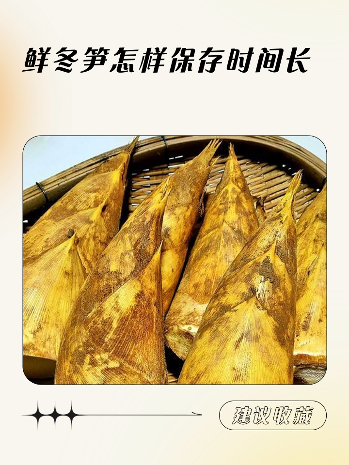 2、新鲜冬笋的保存方法主要有以下几种,可根据实际需求和条件选择合适的方式灶火煨熟贮藏法将挖回的冬笋连壳埋入火堆煨至用手捏笋发软无硬感,取出后置于阴凉潮湿处竖排放好食用时去除外壳,切片后用水漂除苦味即可此方法可保鲜3545天沙藏法在木桶或纸箱底部铺710厘米湿河沙,将冬笋尖头朝上;2将竹笋去壳后,用清水煮熟,然后浸泡在清水中,再放入冰箱中冷藏,这样可以保鲜大约15至20天3另外一种长期保存的方法是将竹笋煮熟后,制作成酸笋将处理好的竹笋放入密封罐中,加入适量的醋和盐,然后放入冰箱中保存,这样可以保存近一年时间4竹笋主要分为蔬菜型和食用型两大类蔬菜型;必须用清水浸泡,进行脱盐处理2水煮后保存长期保存冬笋时,还可以把它用清水煮至以后再保存,煮制的时候需要把新鲜的冬笋,切成厚的片状,然后放在清水中煮半小时,再取出,直接用清水冲洗一下,然后把它装入的保鲜袋中,直接放入冰箱冷冻保存,食用时拿出化开,它能依然保持新鲜3风干保存风干。