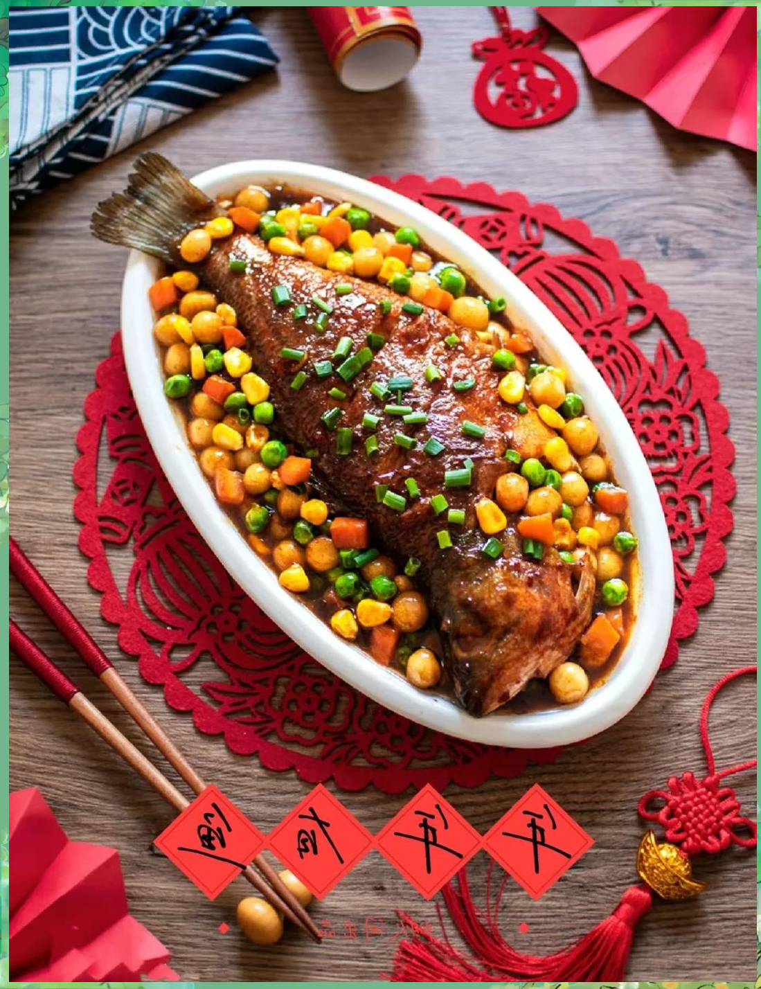 1一锅炖盆满钵满 这其实不是一道菜,而是一个做法,主要是将很多美味放在一起,这种“大杂烩”的做法,寓意着丰收,富足,来年一样盆满钵满,年夜饭都会有的一道菜2红烧鱼年年有余 中国传统有年年有余的说法,所以鱼是年夜饭必备的一道菜除夕夜吃鲤鱼,鲤同“礼”谐音。