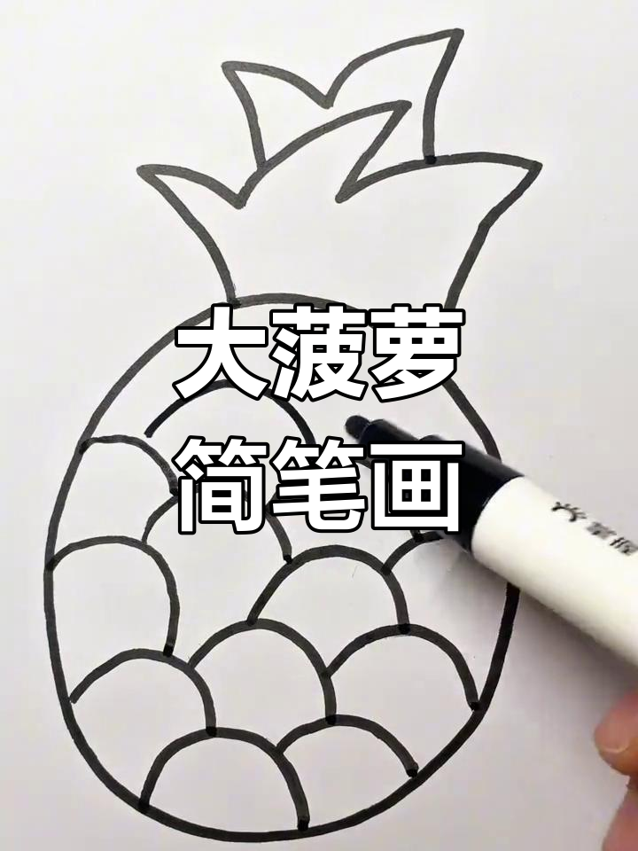 11、简笔画大菠萝的绘制步骤如下工具原料 一张纸一支笔方法步骤 画出菠萝轮廓用铅笔在纸上勾勒出菠萝的整体形状,通常为椭圆形或略呈圆柱形,底部稍窄,顶部略宽顶部预留出画叶子的空间,底部可稍微圆润处理画出菠萝上部分花纹在菠萝主体上,从顶部开始向下画交叉的斜线,形成网格状花纹线条无需。