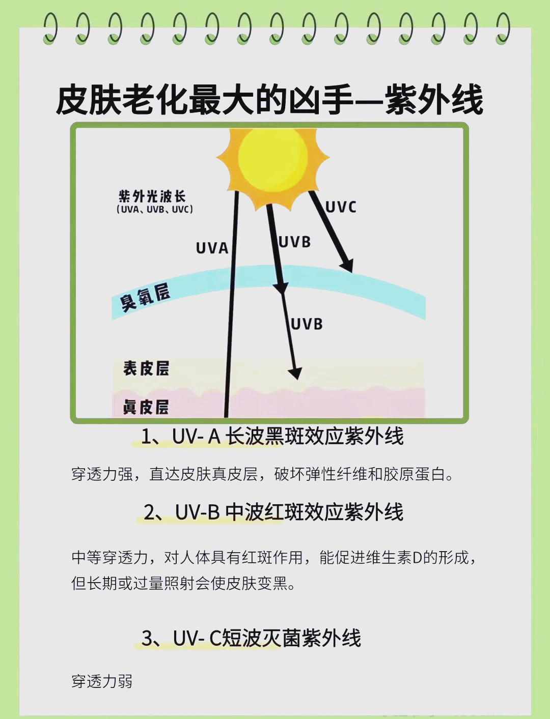 1 阳光中的紫外线分为UVA和UVB两种,它们对皮肤的损伤程度不同UVA的穿透能力强,能深入皮肤内部造成老化UVB能量较高,主要导致皮肤晒伤相比之下,偏光对皮肤的损伤相对较小2 UVA和UVB的穿透能力也有所区别UVB在通过地球大气层时被大量阻拦,因此难以透过玻璃而UVA的穿透能力更强,能透过。