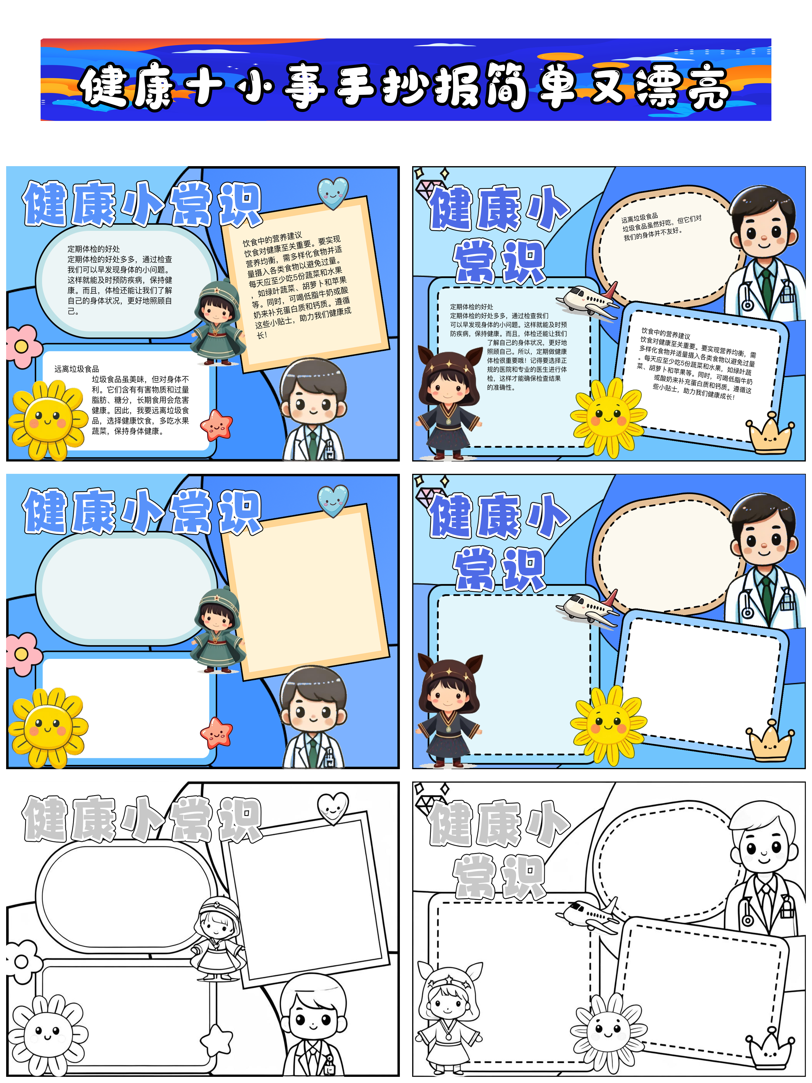 健康手抄报的内容主要包括以下几个方面一健康的概念及重要性 健康定义健康不仅仅指身体上没有疾病,还包括精神上的良好状态和社会适应能力 健康重要性保持健康对于每个人的生活都至关重要二健康生活习惯 合理饮食介绍平衡饮食的概念,强调多吃蔬菜水果,少吃油腻食物,注意营养搭配 规律。