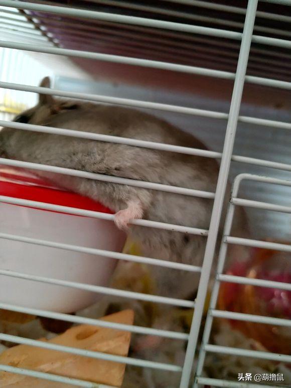 在看出母鼠梨形身材后,跑轮就该拿掉 ,虽然说跑轮平时可以给鼠鼠缓解压力 ,但有些鼠鼠还是会因为跑轮而流产或者受伤 。这个也分个别鼠的属性,比如奥六这种认真负责的鼠妈。孕期最后三天,重了12g,身体那么重,根本不去大量跑轮。奶娃期间,吃饭也是迅速的吃掉,马上回窝奶娃,即使有跑轮也不会去跑。但是这家伙也许有产后焦躁症,没有跑轮解压会使劲啃笼子,磨牙石都不用的,导致在中间啃笼子的它,头顶毛被磨牙石磨秃,磨牙石只有磨掉毛的功能。我只能给它安上小跑轮,大跑轮怕它跑的太流畅。