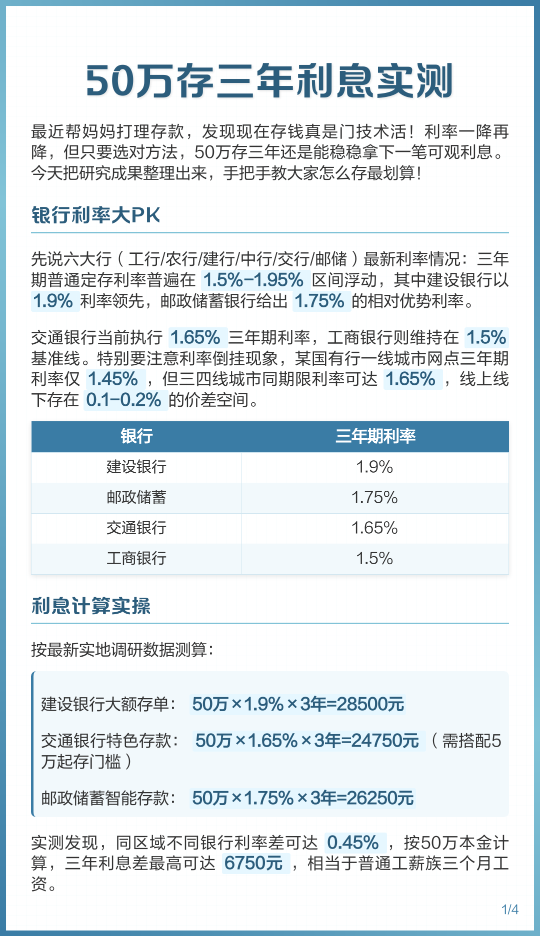 #8226 利率2025年9月调整后为19%,部分信息显示还有125%的情况,利率差异可能源于办理时间或渠道#8226 收益示例50万元存一年,若按19%利率,利息约9500元若按125%利率,利息约6250元2 三年期大额存单#8226 起存金额20万元起#8226 利率较9月上调005个百分点。