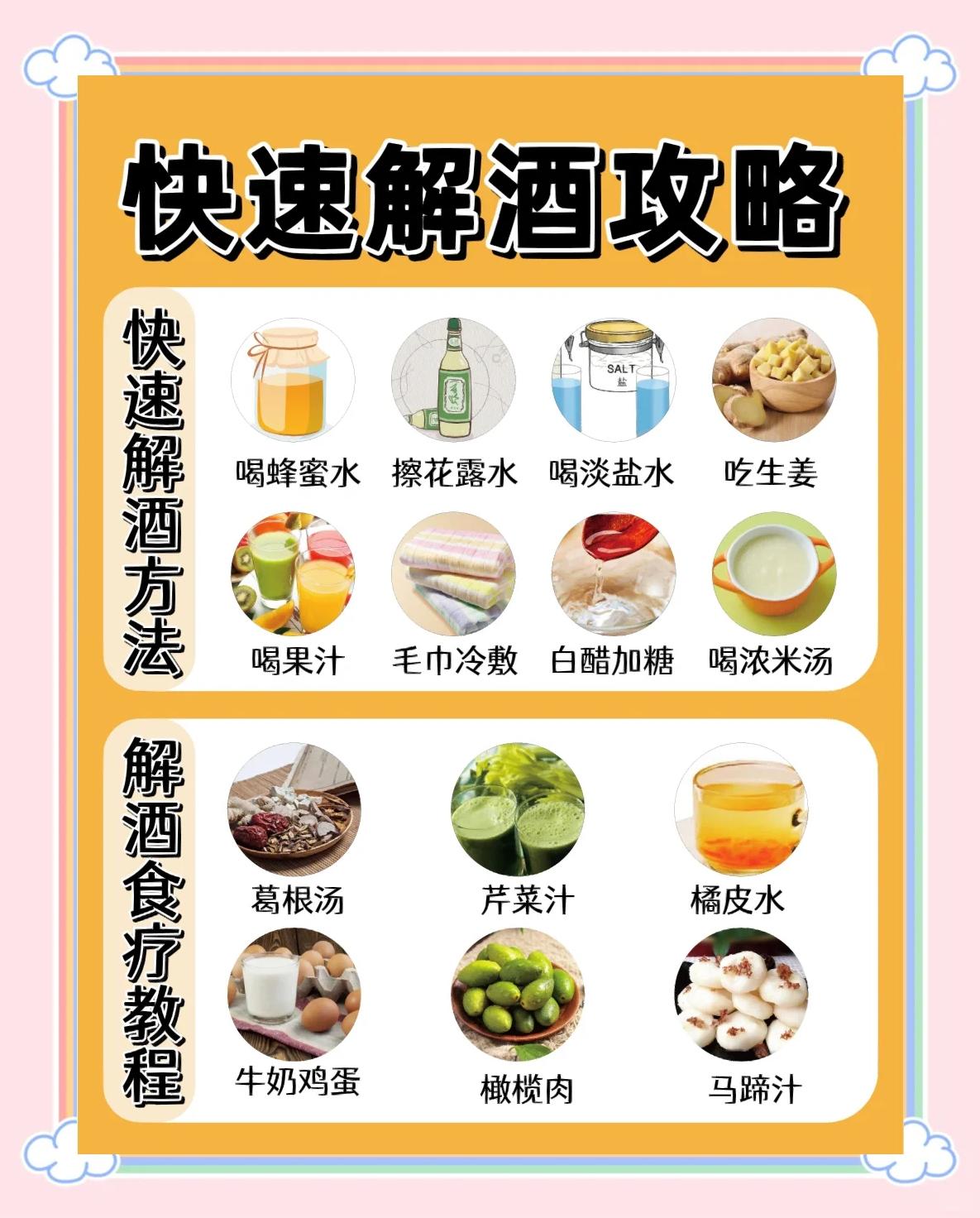 最好的醒最好的解酒方法是预防,喝前吃解酒汤保持头脑清醒的最好的食品或者牛奶或酸奶优质蛋白芬类亦可适量,喝酒前半小时服用,喝前吃点橘子也有用 酒,让人爱恨交加生活中,喝点小酒,吃点小菜,不失为人生一大乐趣但在职场和人际交往中,酒的作用不仅仅是怡情,有时还能促成生意,签个大单子对于能。