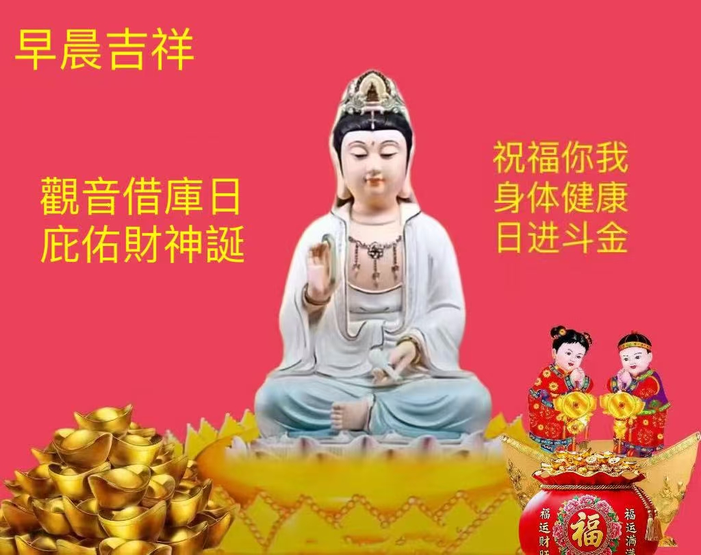 民间百姓为了感谢菩萨的恩情,于是将正月二十六这天设立为“观音开库日”每年到了这天,千千万万的善男善女便会到观音庙去祈福,希望观音的金库能为自己打开,带来好运和财运2习俗 沐浴更衣,斋戒素食 在正月二十六这天,人们会提前沐浴更衣,清洗干净,以表示对观音菩萨的尊敬和虔诚随后,他们会前往;观音借库日是一个传统的节日,相传在这一天,观音菩萨会打开她的金库,借钱给人们,帮助他们致富这当然不是字面意义上的借钱,而是一种寓意,代表着人们向观音菩萨祈求财富和好运在这一天,许多信众会前往观音庙进行“借库”和“还库”的仪式,以此祈求新的一年财源滚滚,好运连连值得注意的是,观。