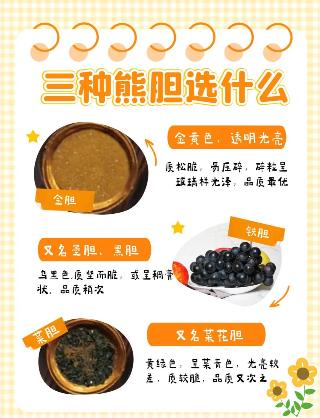 熊胆的功效与作用使用方法及注意事项如下一功效与作用熊胆性苦寒,归肝胆心经,主要功效包括清热解毒适用于热毒引起的疮痈肿毒咽喉肿痛痢疾等症,可缓解局部红肿热痛及全身发热症状清肝明目通过凉肝息风作用,治疗肝火上炎导致的目赤肿痛视物模糊,常用于急性结膜炎角膜炎等;1 外观差异金黄色熊胆汁呈现鲜明的金黄色调,主要由胆红素构成其色素而黑色熊胆汁则显得深黑色,主要由胆绿素作为其色素成分2 质量差异金色熊胆中的胆红素含量较高,这使得它的药效更为显著,具有更强的生物活性相较之下,黑色熊胆中的胆绿素含量较高,但其药效相对较弱3 功效差异金色;通常在夏秋季猎取,取出胆囊后迅速干燥去除胆囊皮膜后,研磨成细粉使用现在,多采用活熊导管引流的方法获取熊胆汁,干燥后制成“熊胆粉”,使用方法与干燥胆汁相同熊胆的味道苦,性质寒归入肝胆心经熊胆的主要功效包括清热解毒息风止痉清肝明目二熊胆的作用 熊胆含有胆汁酸盐,具有。