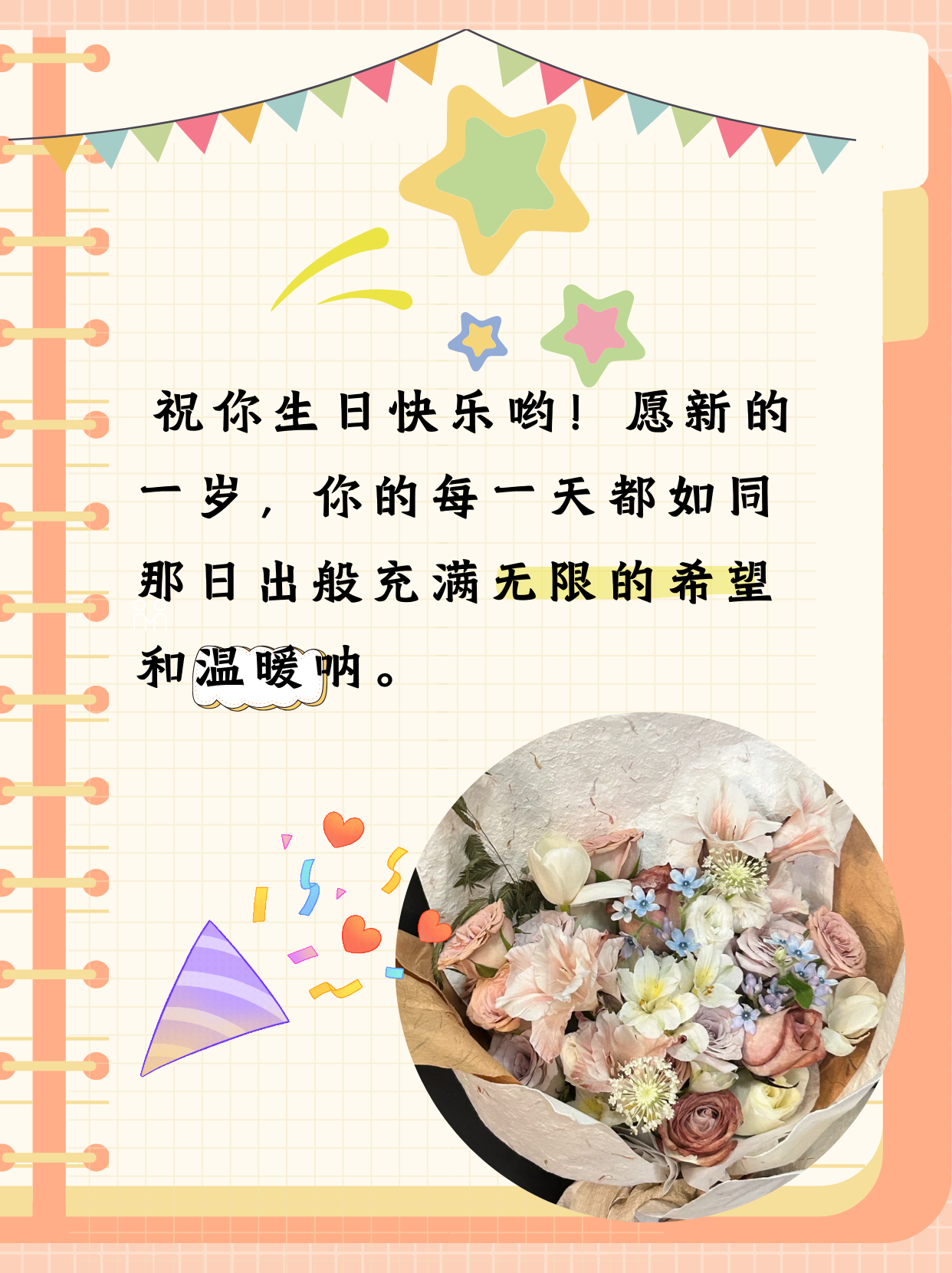 即将又长一岁,不免轻轻微笑,生日快乐2愿你一生努力,一生被爱,想要的都拥有,得不到的都释怀,只愿你被这世界温柔相待,生日快乐3愿你贪吃不胖,愿你深情不负,愿你傻人傻福,愿你一直幸运亲爱的自己,生日快乐4不念过往,不畏将来,不忘初心,送自己一句矫情洋气有深度的生日祝福语,happybirthday5。
