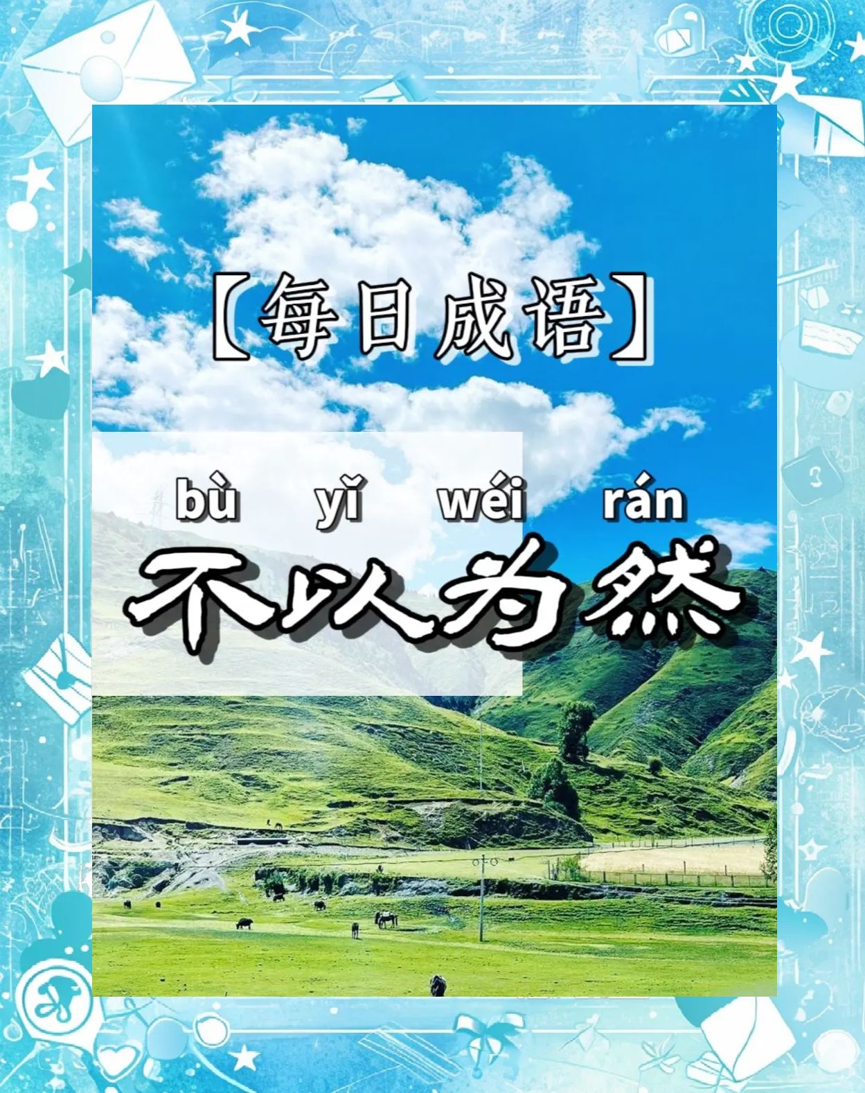 不以为然的意思是不认为是对的,表示不同意或否定不以为是的意思是不把它放在心上,表示对人对事抱轻视态度不以为然这个成语通常用于表示对某个观点建议或行为的否定态度例如,当某人提出一个建议时,如果另一个人持反对意见,就可能会说“我不以为然”它强调的是对某个事物的正确性;不以为然的意思是不认为是正确的,表示不同意或否定以下是关于“不以为然”的详细解释含义其中的“然”表示“是,对”的意思因此,整个成语的意思就是不认为某件事情或某种观点是正确的,表达了一种不同意或否定的态度出处这个成语出自宋代苏轼的再乞罢详定役法状“右臣先曾奏论;“不以为然”和“不以为意”有明显区别1 语义侧重不同“不以为然”重点在于“然”,意思是不认为是对的,表示不同意或否定某种观点做法等比如,他对这个方案不以为然,觉得存在很多漏洞而“不以为意”重点在“意”,意思是不把它放在心上,对事情抱轻视态度,不重视例如,他对老师的;当我们遇到quot不以为然quot这个词汇时,它的含义是表达对某事或某观点的否定和不认同quot不quot作为副词,起到了否定的作用,quot以quot则是一个动词,与quot认为quot或quot以为quot结合,表示对某个情况或说法的判断quot为quot在这里是一个判断动词,用来连接quot不quot和quot是quot,quot然quot作为一个代词,指的是quot如此quot或quot这样quot,强调的;不以为然的意思是不认为是正确的,表示不同意或否定详细解释如下词义解析“不以为然”中的“然”字,意为“是,对”整个词语表达的是对某种观点行为或事实不持认同态度,认为其不正确或不合理词语出处该词语出自宋代苏轼的再乞罢详定役法状这表明“不以为然”这一表达在中国。