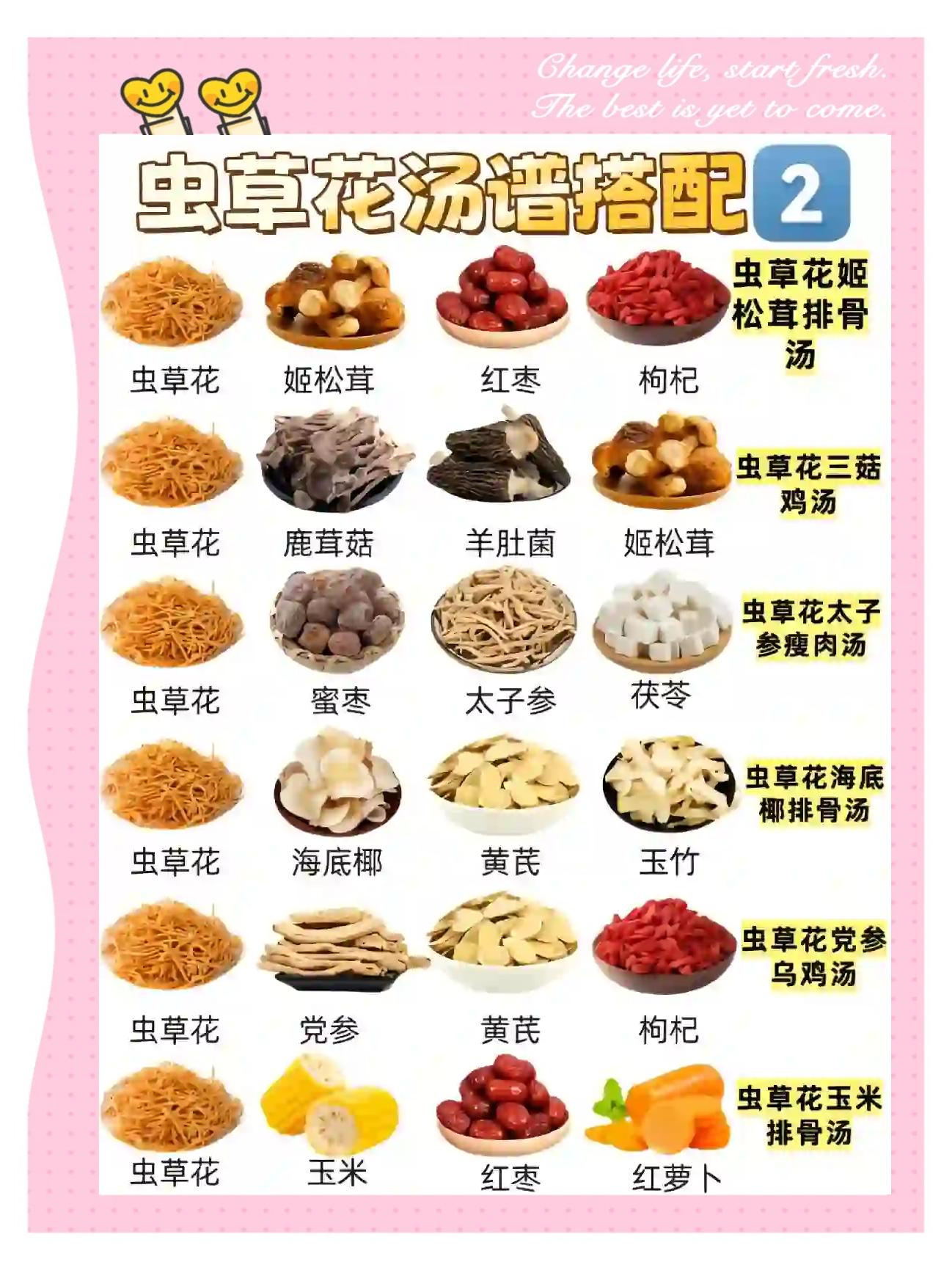 7、虫草花不能和以下食物一起煲汤酸冷食物如酸牛奶等这类食物不仅会降低虫草花的效果,还可能腐蚀食物,导致胃肠不适因此,在食用虫草花期间,应避免同时食用酸冷食物绿豆绿豆会中和虫草花的药效,使得身体无法充分吸收虫草花的营养成分因此,虫草花和绿豆不宜一起煲汤建议在食用虫草花时。