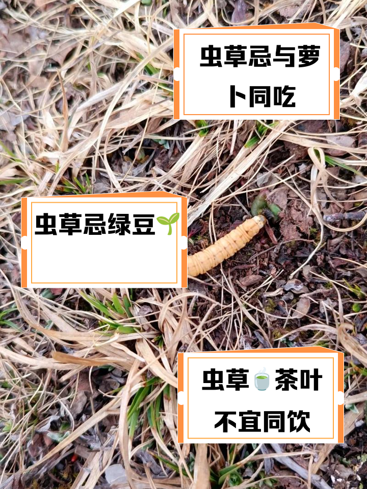 5、1绿豆,绿豆会中和虫草花的药性,吸收不了营养并且绿豆中与虫草花含有的化学成分互相冲突,对虫草花的功效造成浪费因此不建议虫草花能和绿豆同吃 #1602酸冷食物,如果吃了虫草花再吃酸冷食物,比如酸奶等不仅让虫草花的效果降低,还会腐蚀食物,使肠胃恶心如果大量摄入,还有可能引发高。