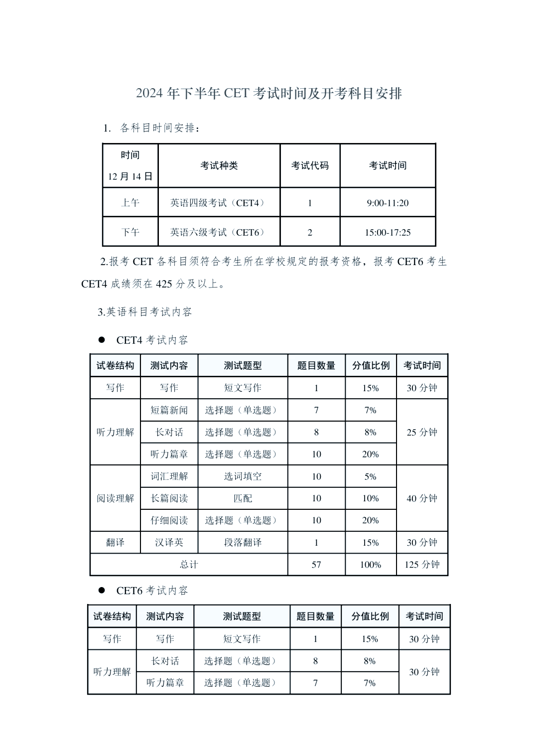 考试当天必须按照规定时间入场,四级入场时间为 840,六级入场时间为 1440考试入场开始 15 分钟后禁止入场,即上午 900,下午 1500 后禁止入场迟到考生将无法进入考场,无法参加考试四六级考试时间1英语四级,每年6月和12月第三个星期六090011202英语六级,每年6月和12月。