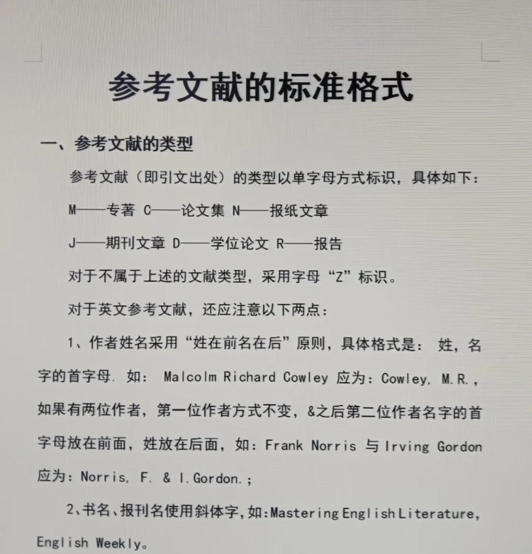 论文中参考文献引用的是国家颁布的文件或纲领政策,要用N字母表示根据GB3469 83文献类型与文献载体代码规定,以单字母标识M一专 著含古籍中的史志论著C一论文集N报纸文章J一期刊文章D一学位论文R研究报告S标准P专利A专著 论文集中的析出文献Z一其他未说明;具体格式如下专著论文集学位论文研究报告序号主要责任者文献题名文献类型标识出版地出版者,出版年起止页码例如1周振甫周易译注M北京中华书局,1991期刊文章序号主要责任者文献题名J刊名,年,卷期起止页码例如2何龄修读顾城南明史J;1在论文中引用参考文献的地方,用括号和数字标注,例如“1”“2”等 2在论文末尾,列出所有参考文献可以按照作者姓氏的首字母顺序排列,也可以按照引用文献的顺序排列 在参考文献列表中,每个条目应该包括以下信息作者姓氏出版物的标题出版物的类型例如期刊书籍等出版物的年份引用文献的;参考文献按照其在正文中出现的先后以阿拉伯数字连续编码,序号置于方括号内一种文献被反复引用者,在正文中用同一序号标示引用一次的文献的页码或页码范围在文后参考文献中列出电子文献类型为数据库DB,计算机CP,电子公告EB电子文献的载体类型为互联网OL,光盘CD,磁带MT;输入参考文献信息后,Word会自动在文档中添加编号并跳转至尾部当你需要多次引用同一文献时,只需在第一次引用后创建尾注,之后通过“插入”“交叉引用”功能,选择“尾注编号带格式”,选择相应的文献引用即可以上就是关于如何在论文中引用网络和非网络资源的参考文献撰写指南,希望对你有所帮助。