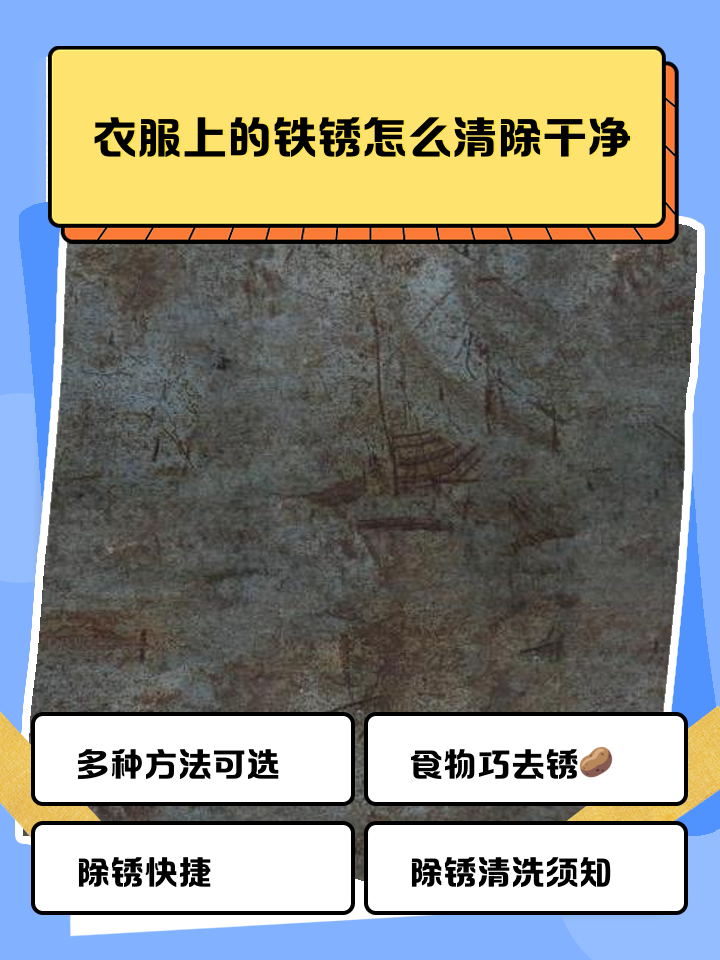 白色衣物铁锈快速清除妙招利用酸性溶解反应+及时清洗是关键衣物沾染铁锈后需尽快处理,可优先用家中常备物品应急例如将柠檬汁或白醋蘸湿锈斑,撒上食盐揉搓,利用柠檬酸与盐形成的微腐蚀环境分解氧化铁若是陈年锈渍,可用510片维生素C碾碎成粉调成糊状敷盖污渍30分钟,其还原性可破坏铁锈结构针。