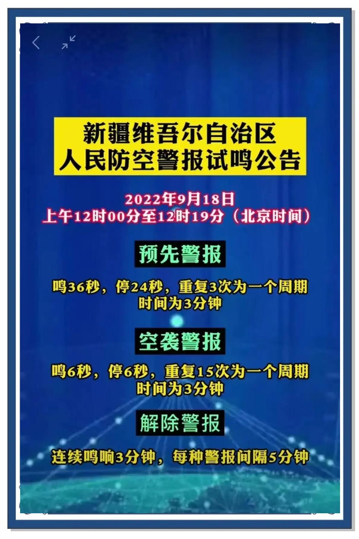 4、三种防空警报声音的区别主要是音响信号不同1预先警报信号 在城市可能遭到空袭的情况下,告知市民提前做好防空袭各项准备音响信号为鸣36秒停24秒,重复3遍,时间3分钟,主要是城市有遭空袭迹象时的早期预报,提示人们实施防护或紧急疏散2空袭警报信号 在空袭已临近城市上空,空袭行动即将或已;防空警报声音代表不同的紧急状态和行动指示,具体分为以下三种预先警报声音特征响36秒,停24秒,反复循环3分钟代表意义在可能遭受空袭威胁时鸣响,提醒民众预先做好准备,采取必要的防护措施空袭警报声音特征响6秒,停6秒,反复循环3分钟代表意义在将要或已经遭受空袭时鸣响,指示民众。