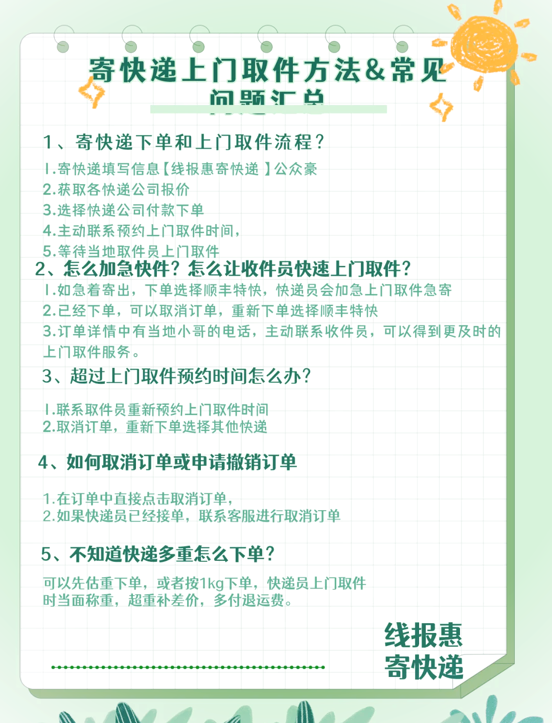 2通过顺丰官网预约访问顺丰官网,在“我要寄件”部分填写相关信息,如寄件人和收件人的姓名地址电话等,完成预约后等待业务员联系并上门取件3使用微信预约关注“顺丰速运”公众号,在“寄快递”选项中选择“寄快递自寄”,填写相关信息并提交,即可预约上门取件服务4前往顺丰速运网点预约如果方便,也可以直接前往附近的顺丰速运网点,填写快递单并预约上门取件服务。