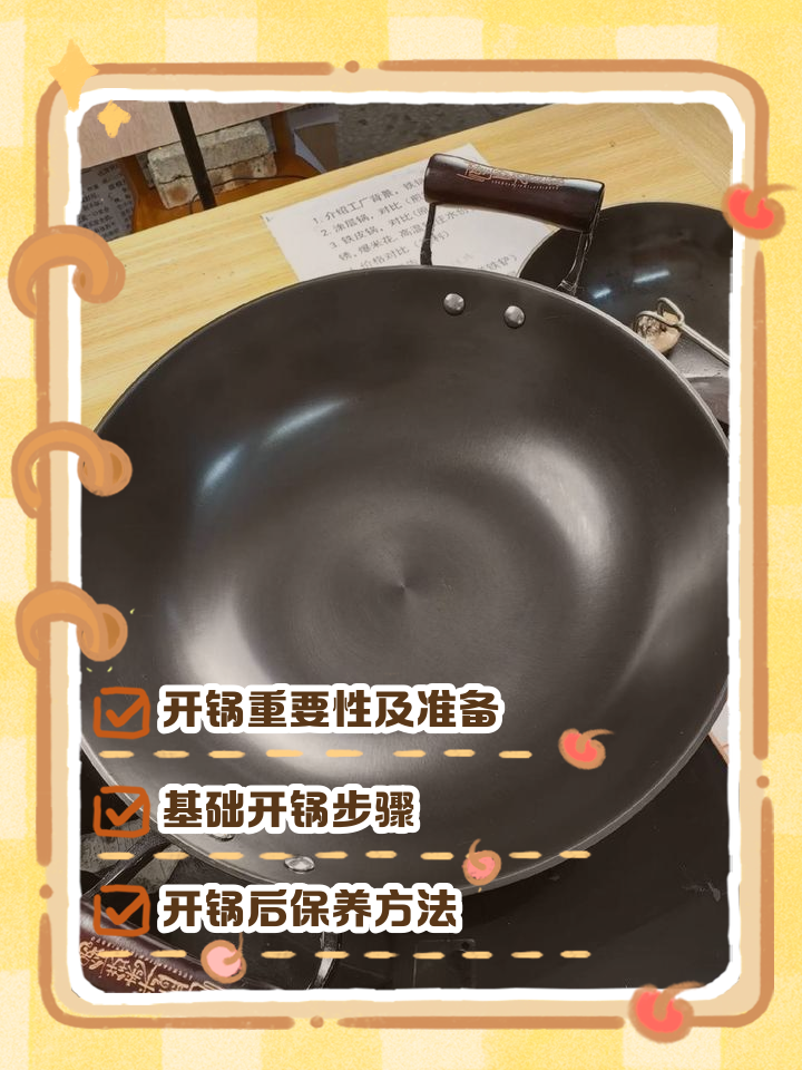新铁锅的开锅是为了让铁锅在使用过程中不生锈不粘锅,以下是开锅的步骤 1准备工具 新铁锅洗碗布洗洁精食用油 2清洗铁锅 先用洗碗布将新铁锅表面的灰尘和杂质清洗干净 3涂抹洗洁精 将洗洁精均匀地涂抹在铁锅内壁,注意要涂抹均匀,避免有残留 4清洗残留 用清水将铁锅内外彻底冲洗干净。