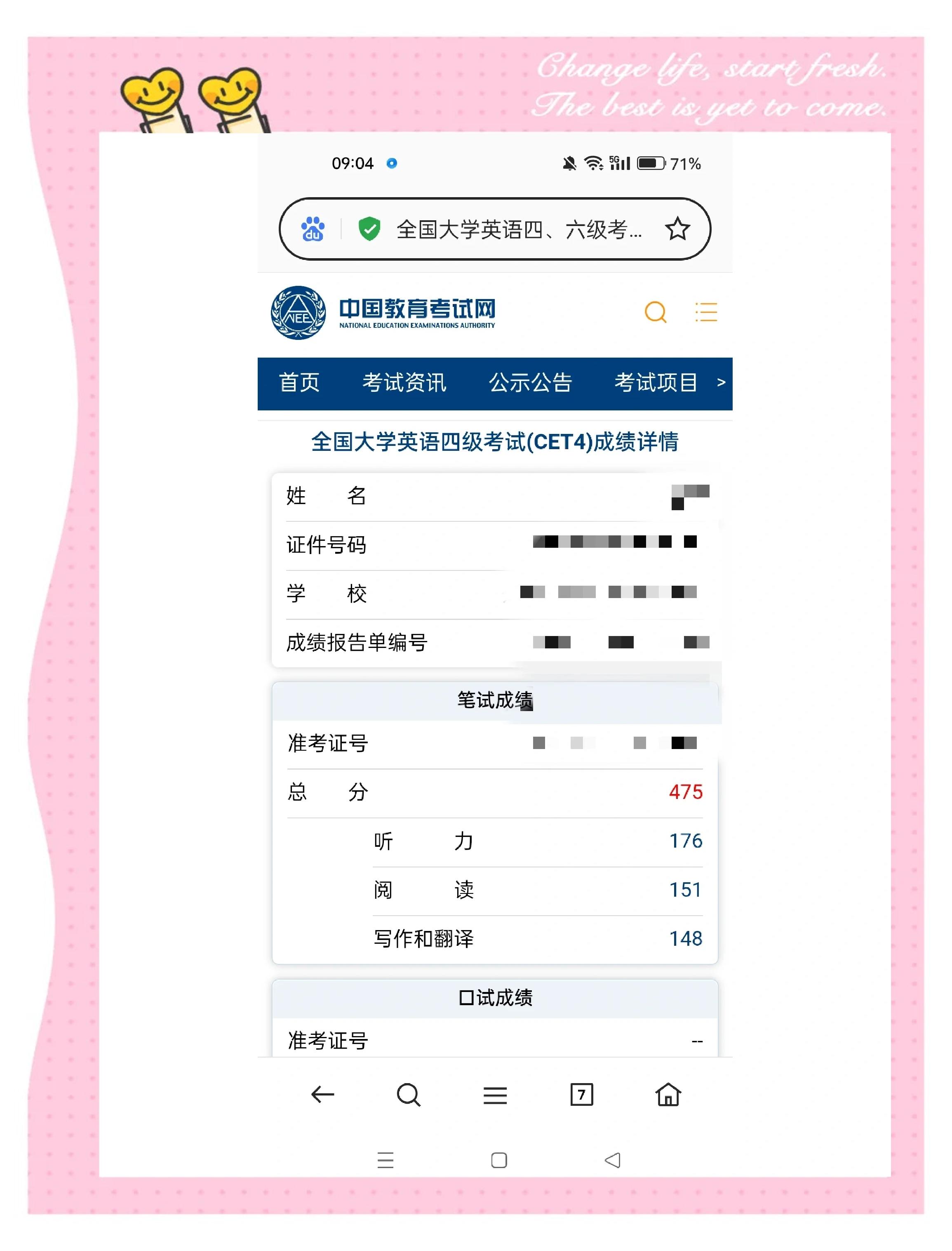 最后,使用身份证查询成绩部分学校考虑到同学们可能遗忘准考证号码,提供了身份证查询成绩的选项访问学校教务处网站查找相关指引,或等待成绩公布时尝试总之,忘记英语四级准考证号码时,以上方法能帮助你查询成绩建议妥善保管准考证号码及其他重要信息,避免下次遇到类似情况切记,保持信息的组织和安全;如果忘记了自己的准考证号,不必过于紧张下面提供几种查询方法首先,你可以向身旁的同学询问他们的准考证号,通过对比推测出自己的准考证号,然后进行英语四级成绩查询其次,可以访问99宿舍网站,通过其中的方法找回准考证号再者,登录自己所在学校的官方网站,找到教务处栏目,查询个人成绩,此方法最。