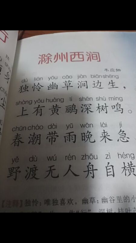 滁州西涧 韦应物 独怜幽草涧边生,上有黄鹂深树鸣 春潮带雨晚来急,野渡无人舟自横 我非常喜爱这河边生长的野草,是那样幽静而富有生趣河岸上茂密树林的深处,不断传来黄鹂鸟的叫声,是那样婉转动听因傍晚下了春雨,河面像潮水一样流得更急了在那暮色苍茫的荒野渡口,已没有人渡河,只有小船独自横漂在河边上。