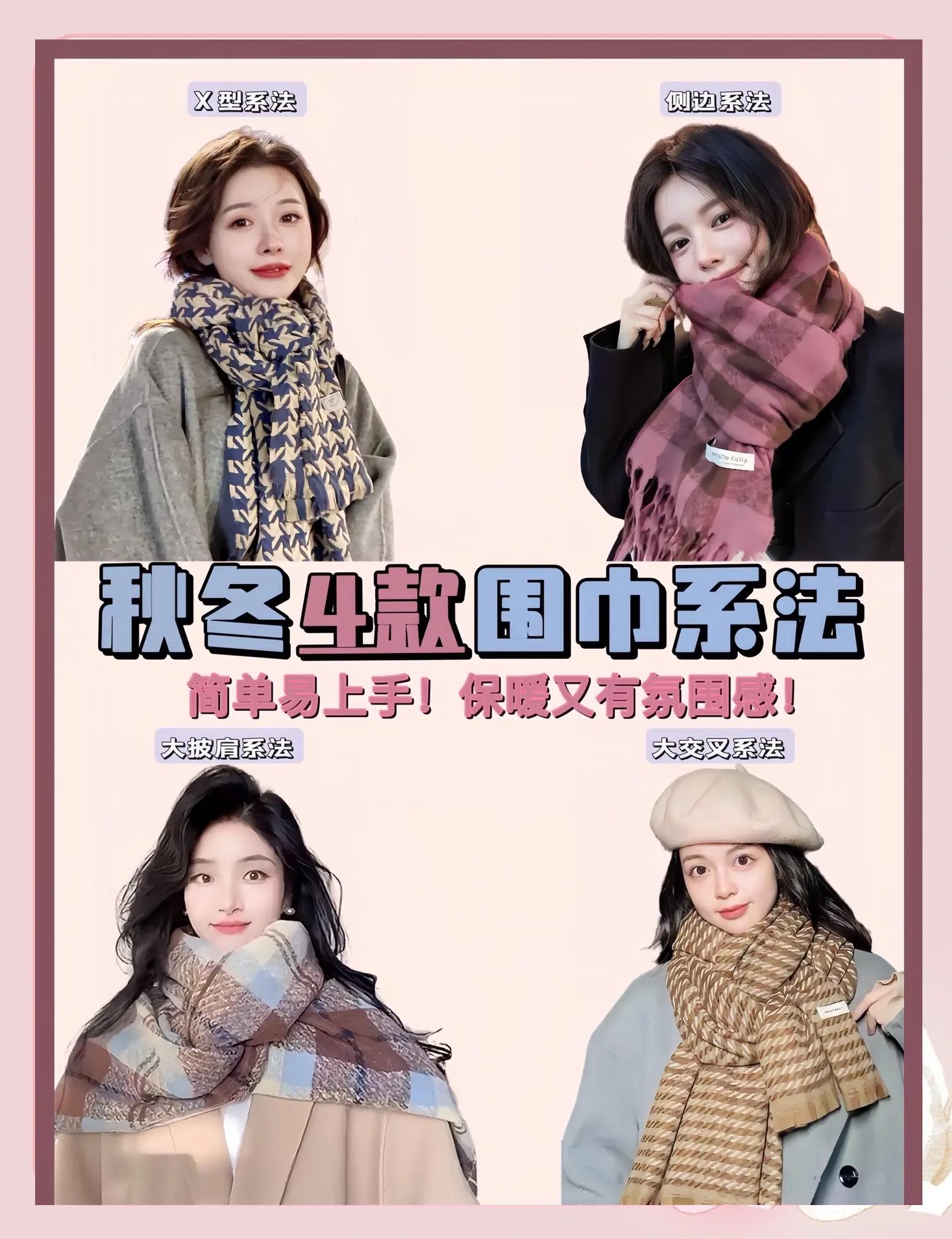 二进阶系法 若想围巾系得更有个性,可以尝试一些进阶的系法1 单结法 将围巾在脖子上绕一圈后,在一侧打一个结,使围巾更稳固地待在脖子上这种系法既保暖又具有一定的时尚感2 双层围法 先将围巾在脖子上绕一圈作为底层,再搭一条短款围巾在前方交叉,形成双层的效果这种方法层次感强。