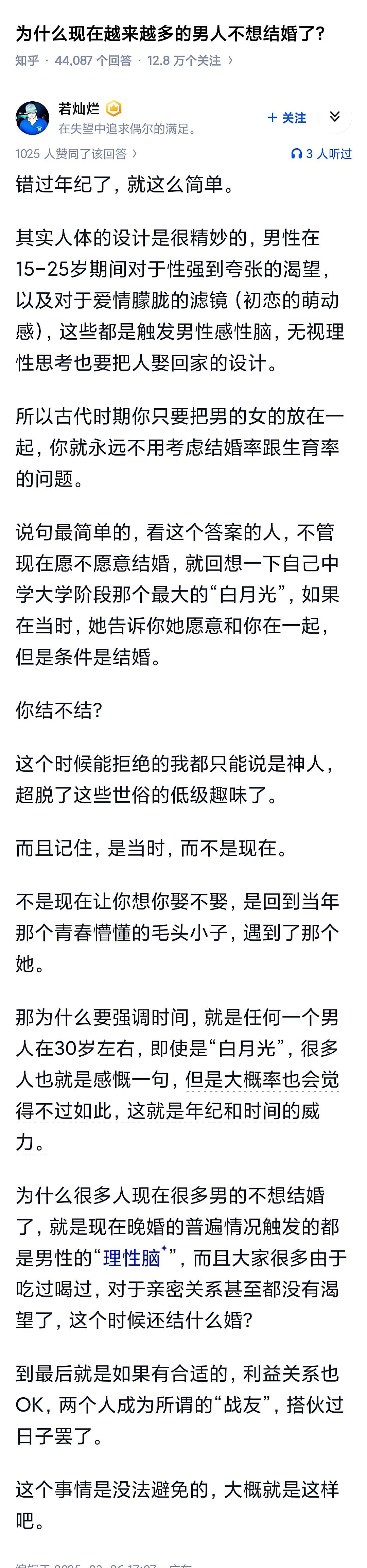 人都有追求自由甚至是散漫的倾向,而男人尤甚婚姻本就是一种约束,尽管这种约束是必要的也是应该的,但人在骨子深处还是不想要约束,正所谓“城外的人想进去,城里的人想出来”而男人一旦离婚了,不管是什么情况下离的婚,想要复婚的欲望要比女人低,在要不要走进婚姻这个问题上,男人也多半是被动。
