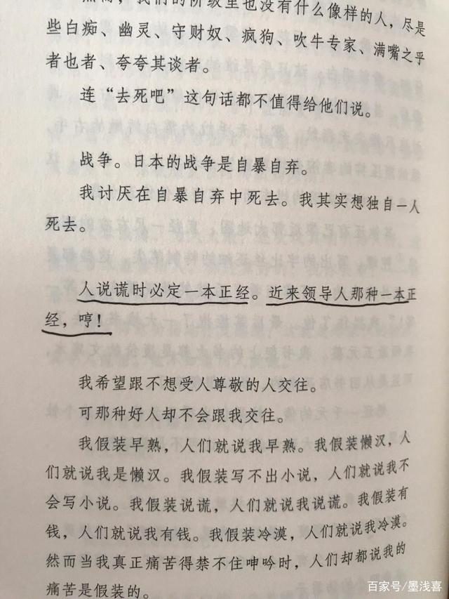 73 闲暇时去看了人间失格,沉闷,压抑,黑暗,普通掉进了一片深渊,书里将人性最阴暗的部分毫无保留的暴露出来,一直以来所呈现积极一面,生活已经够苦了,为什么不对自己甜一点,沉沦到底,便是重生,生而为人,不必抱歉 74 除了娶你和转账,说喜欢你和想念你都是假的,嘘寒问暖不如打笔巨款 75 在一个人的日子;太宰治,我最欣赏的日本作家,与其他的日本作家不同,太宰治总是以一种期望的眼光看待这个世界,没有人会知道明天会发生什么,就像人间失格的叶藏一样,本是一个努力向上的求学者,可是在那个黑暗的社会面前,光也会被黑暗吞没,社会上形形色色的人会改变着你,如果你不加谨慎,很有可能会沉沦叶藏的一生如飘零之落叶。