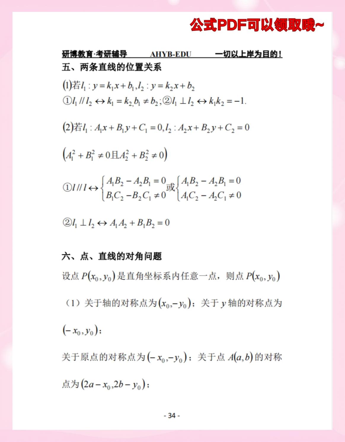 直线外一点与直线上各点连接的所有线段中,垂线段最短点到直线的距离叫做垂线段知识与目标理解点到直线距离公式的推导过程,并且会使用公式求出定点到定直线的距离了解两条平行直线的距离公式,并能推导 过程与方法通过对点到直线距离公式的推导,提高学生对数形结合的认识,加深用“计算”来;直线到直线的距离公式,可以通过两直线的方向向量和法线向量来求解但这里,我给你一个更直观简单的方法假设你有两条直线,L1和L2首先,找到两条直线上各自的一个点,记为A和B然后,找到两条直线的方向向量,分别记为d1和d2接下来,我们需要找到一个向量n,这个向量与两条直线的方向向量。