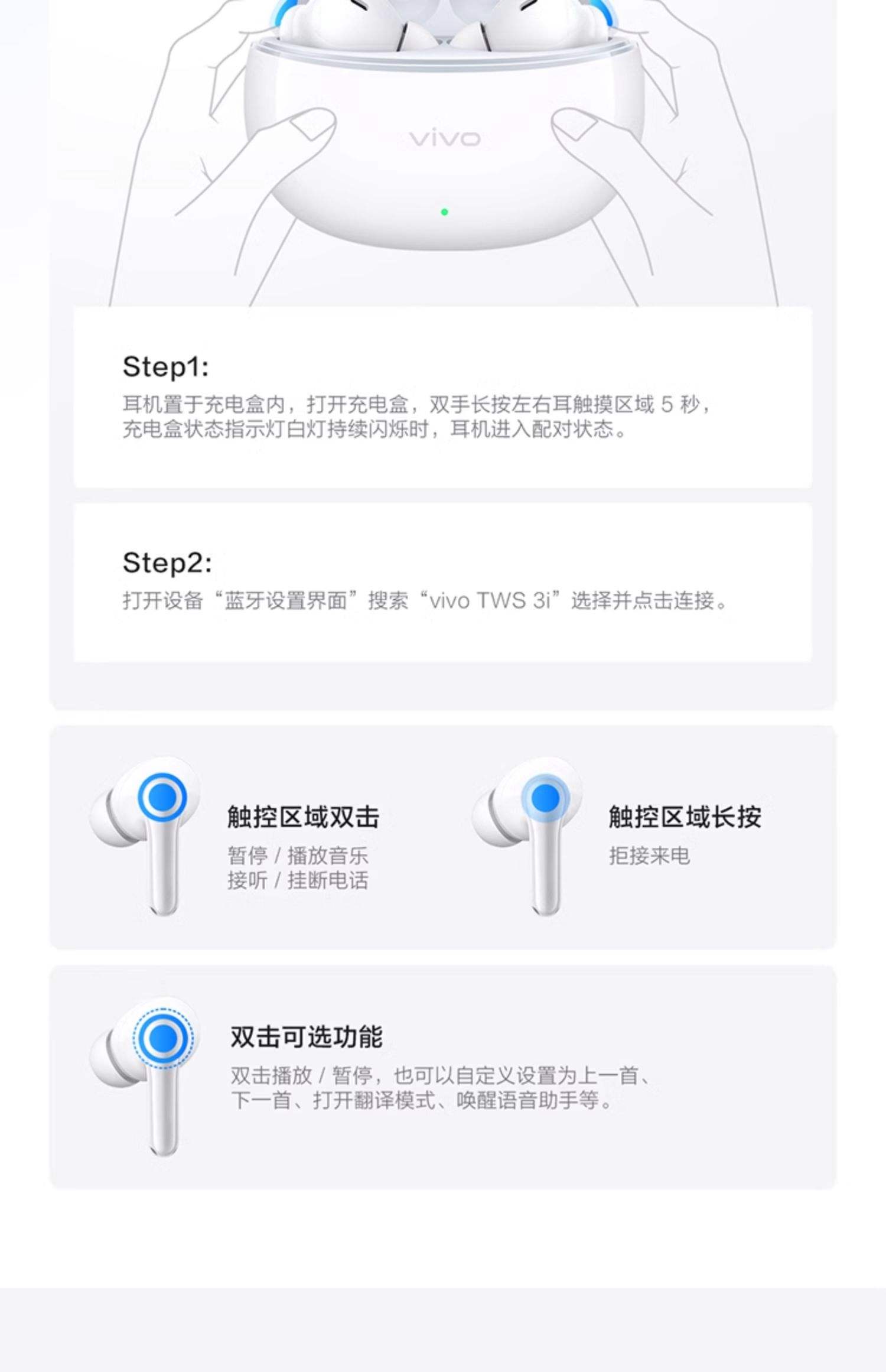 twsi7双耳使用的方法如下进入配对状态打开twsi7蓝牙耳机的开关键,并长按该键,直到指示灯出现红蓝灯交替闪烁的状态,这表明耳机已经进入了配对模式开启手机蓝牙在手机上开启蓝牙功能,并将手机蓝牙设置为“所有人可见”或“可被搜索”或“开放检测”状态,以便搜索到附近的蓝牙设备连接耳机在;TWSi7连接双耳的方法如下一将TWSi7蓝牙耳机进入配对状态 首先,需要打开TWSi7蓝牙耳机的开关键,并长按该键直到指示灯出现红蓝灯交替闪烁的状态这表明耳机已经进入了配对模式,准备好与其他蓝牙设备进行连接二开启手机蓝牙功能并搜索设备 接下来,需要在手机上开启蓝牙功能,并将手机蓝牙设置为;twsi7双耳使用的方法如下进入配对状态打开twsi7蓝牙耳机的开关键,并长按该键,直到指示灯出现红蓝灯交替闪烁的状态,这表明耳机已经进入了配对模式开启手机蓝牙在手机上开启蓝牙功能,并将手机蓝牙设置为“所有人可见”或“可被搜索”或“开放检测”状态,以便搜索到附近的蓝牙设备连接耳机在手。