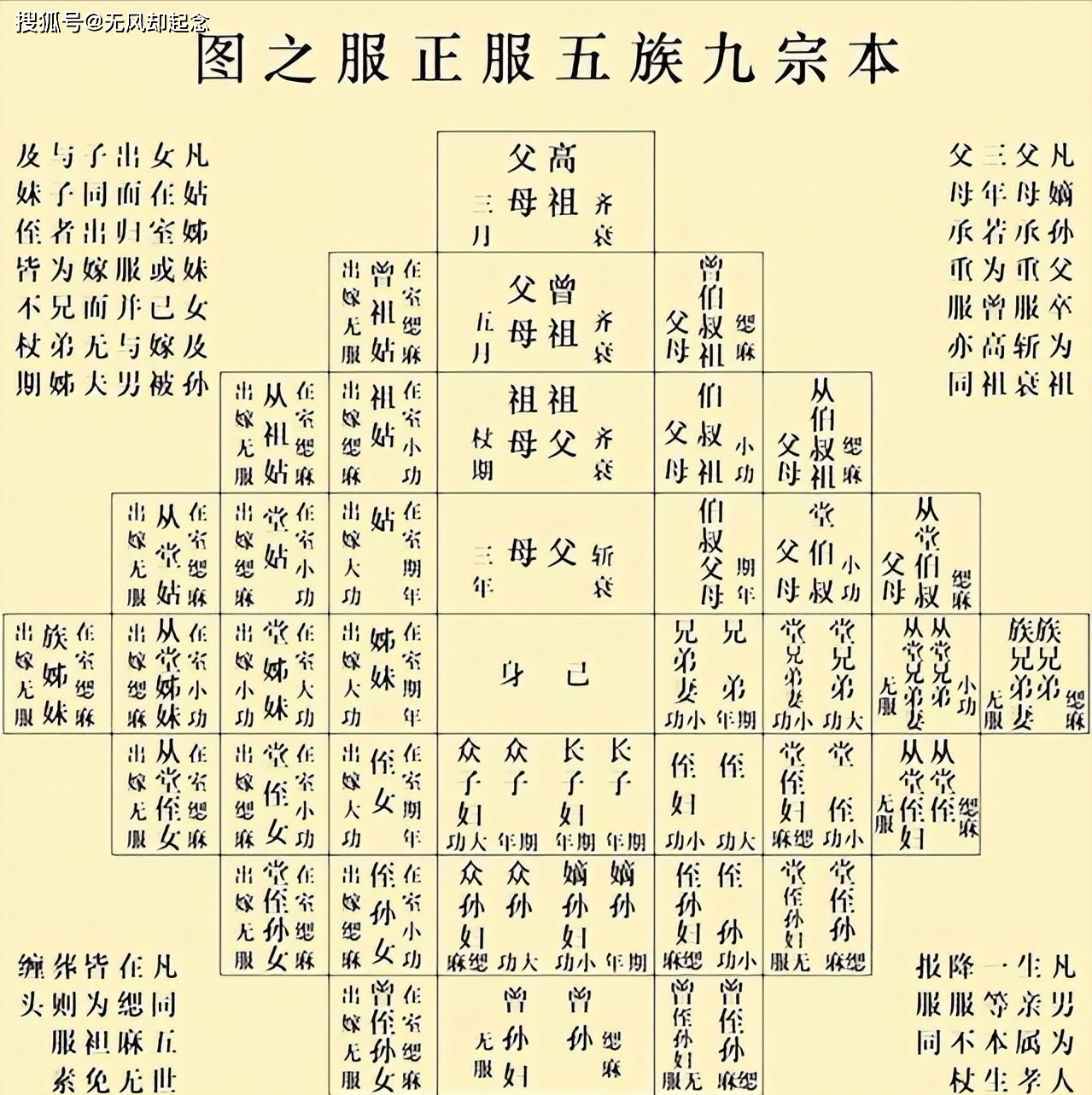 母之父族即母亲的父亲及其家族成员母之母族即母亲的母亲及其家族成员从母与其子即从母及其子女妻族二姥之父族即妻子的父亲及其家族成员姥之母族即妻子的母亲及其家族成员在古代社会,“诛九族”是一种极为残酷的刑法制度,意味着一人犯法,其整个家族成员都可能受到牵连而被处死。