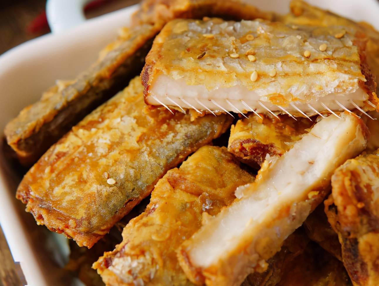 10、用料 主料带鱼2条辅料大葱1小段白胡椒粉1茶匙盐10克淀粉适量料酒4茶匙姜5片食用油1000毫升酥炸带鱼的做法 1带鱼去鳃去内脏洗净切成段,放入大碗,放入所以调料拌匀腌制30分钟2带将带鱼冲洗一下用厨房纸巾擦干,放入大盘撒上淀粉爪匀,抖掉多余的淀粉待用3取一个深。