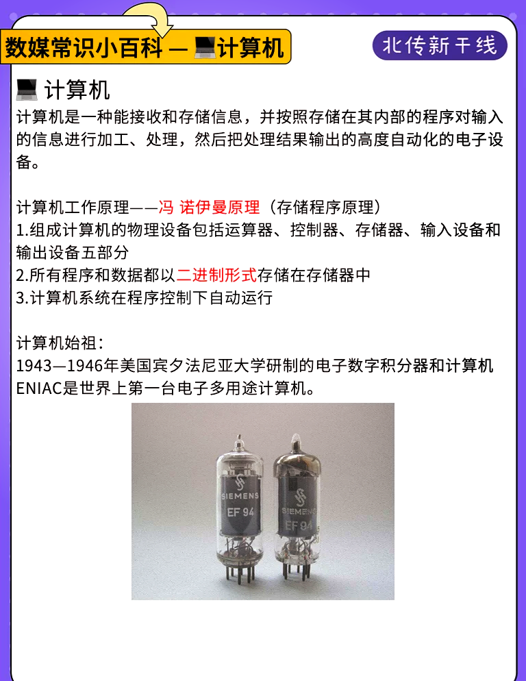 8、冯诺依曼计算机的基本原理是存储程序与程序控制,具体包括以下几点存储程序是指计算机在执行操作之前,先将程序和数据存储在计算机的记忆装置中,即存储器里将程序作为数据处理的一个重要部分,与数据一起存储在同一个存储器中,这样计算机在执行任务时,能够按照预先设定的程序有条不紊地进行数据的处理。