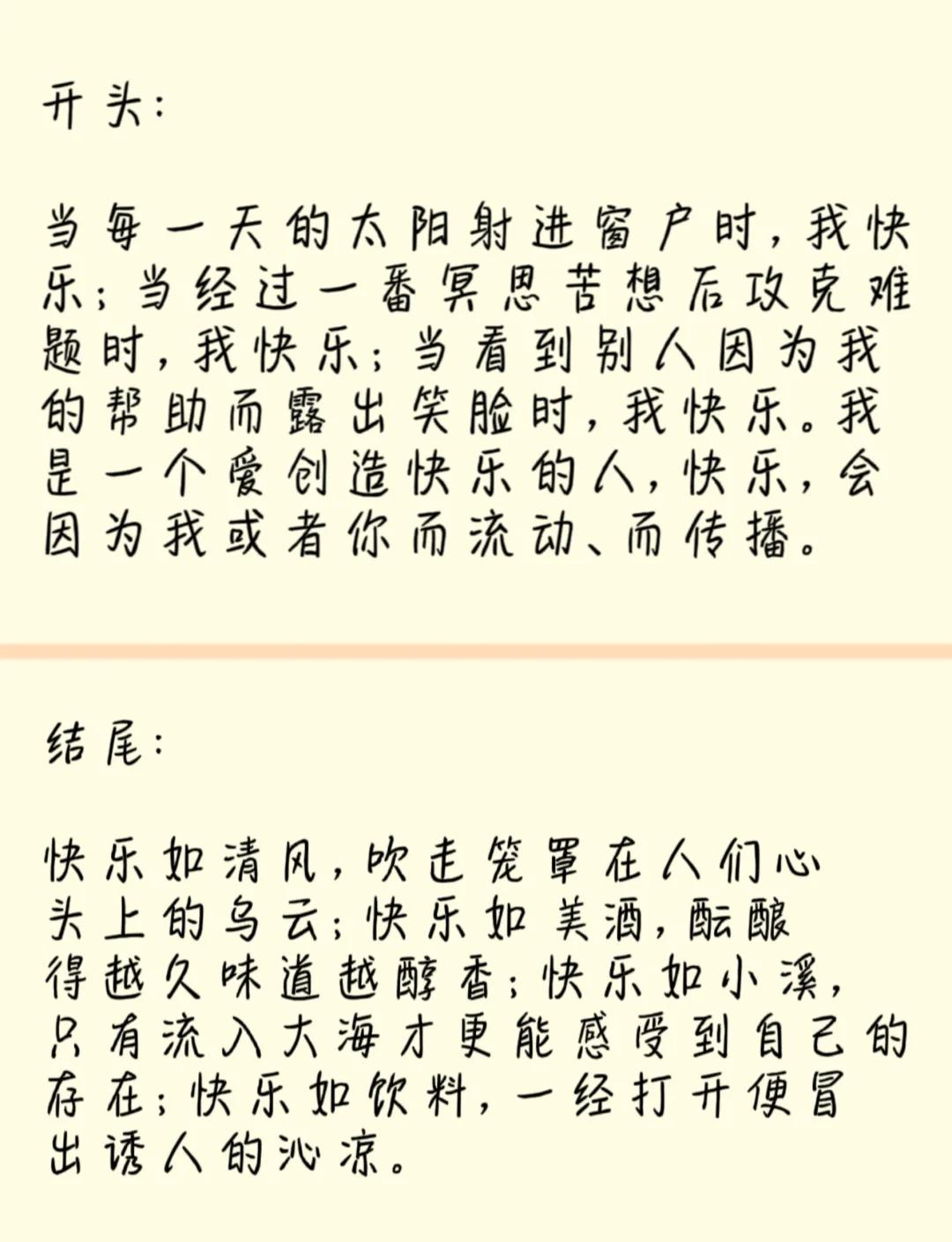 9、惊艳阅卷老师的作文开头和结尾的素材 摘抄自人民日报每日写作素材积累,帮你提升写作水平 惊艳阅卷老师的开头结尾 主题希望 开头 月有阴晴圆缺,人有悲欢离合,命有否泰变化,年有四季更替,熬过长夜,你便能见到黎明,饱受痛苦,你便能拥有快乐,耐过寒冬,你便无须蛰伏,落尽寒梅,你便能祈盼新春 结尾。