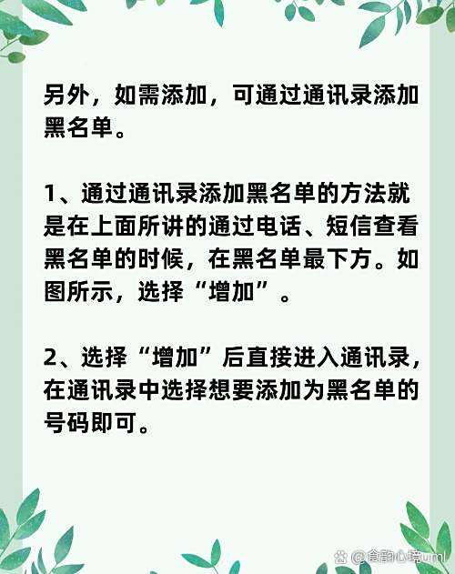 8、手机通讯录黑名单的查找位置因手机系统不同而有所差异,以下是具体查找方法苹果手机iOS系统打开“设置”应用,向下滑动找到“电话”选项点击进入后,选择“已阻止的联系人”,即可查看所有黑名单号码安卓手机方法一通过“电话”应用打开自带的“电话”“拨号”应用,点击右上角菜单按钮三个。