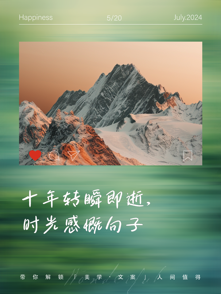 1、1抵达目的地时,眼泪不由自主地流下,十年的光阴就这样匆忙逝去2如果时间允许,我愿意在这里度过一天,然而十年转瞬即逝,宁波已经不再是记忆中的模样3十年时间足以改变一个人,成就一个人,也能毁灭一个人4人生于世间,心胸应宽宏红尘滚滚,转眼间几十年过去繁华落尽,一切终成空;人生有多少个十年呢!10十年,人生路途的一小段儿十年,数个黑夜和白天日月星辰十年,你在我心里从未离开十年,还能有多少个十年11十年前,我还是个中学生,十年后的今天,对不起十年前的自己,试问人生还能有多少个十年,且行且珍惜!还能有多少个十年的感慨说说12还是挺感慨的,一晃十年要过去了人生还能;5找一个自己爱的人,还不如找一个爱自己的人毕竟,最后和你共度余生的人,可能不是你最爱的,而是爱你的人6爱你的人不会让你的难过过夜,趁早分吧人生苦短,一定要找个疼爱自己的人7人生最大的幸福莫过于找个疼爱自己的人,余生希望能够彼此包容,理解,每一天都过的有意义;17一辈子那么长,不到最后一天,你永远不知道陪你走到最后的那个人是谁一辈子那么短,小心翼翼地珍重,却只够用心去爱一个人 18人生果然很短暂一闭一睁,一天过去了,一闭一睁,一辈子过去了 19有人说,十年太长,什么都有可能会变一辈子却太短,一件事也有可能做不完 20人一辈子不长不短,走着走着,就进了坟墓,你是要轰轰烈;一个人的经典说说一个人的夜场一个人狂欢一个人酒醉一个人成眠一有一个你爱的人真好,其实我一个人也挺好,人生短短几十年何不尝试一下孤独终老二我用了五年的时间,从一个女孩子成长为女汉子一个人的夜场一个人狂欢一个人酒醉一个人成眠我多想有个宽广的胸怀去拥抱这个美丽的;15天气虽冷,但心很暖感谢相识,人生还有多少个十年始终如一16在光阴面前,一切都是浮云不知不觉,人生已过一半无论是碌碌无为还是建功立业,做人,问心无愧就好17多么想回到那青葱岁月,人生还有多少个十年,记录现在的美好,享受开心18你还要继续走下去2020年,又一个十年的。