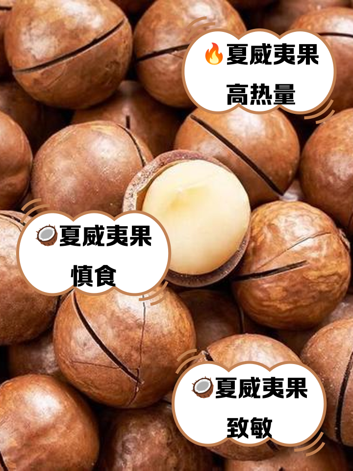 13、夏威夷果虽然营养丰富,但有一些原因使其要尽量少吃 夏威夷果的热量极高,每100克的热量可达700千卡左右,大量食用容易导致热量在体内堆积,进而转化为脂肪,增加肥胖风险其脂肪含量也很高,大约在70% 80%,过量食用会加重肠胃消化负担,尤其是本身肠胃功能较弱的人群,可能引发消化不良腹痛腹泻。