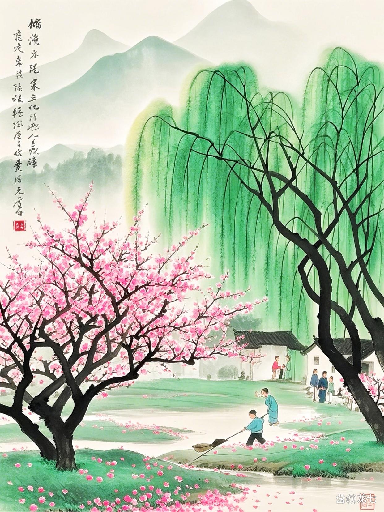 田园乐七首·其六全诗意思如下首句“桃红复含宿雨”,描绘了春天的早晨,红色的桃花上还带着隔夜的新雨,晶莹欲滴,色彩更加鲜艳动人这句诗以细腻的笔触,展现了雨后桃花的娇媚之态次句“柳绿更带朝烟”,进一步渲染了春晨的美景碧绿的柳丝在晨风中轻轻摇曳,仿佛还带着淡淡的春烟,给人一种朦胧而清新的。