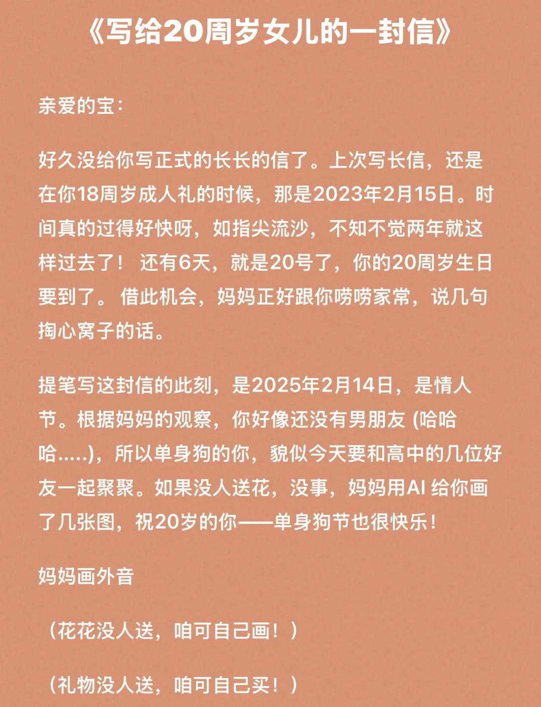 写给女儿成人礼的信,核心是情感真挚细节具体,同时传递人生智慧 这类信件需要平衡“回忆成长”与“展望未来”,建议采用温暖叙事+明确期许的结构以下是具体建议 一信的核心结构应包含四个部分 1 称呼与情感破冰 用“亲爱的宝贝”“我的小大人”等昵称开头,直接表达此刻心情“提笔。