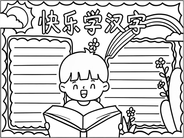 在合适的位置写上制作人的班级和姓名,以示尊重和归属清理痕迹全部画完写完之后,用铅笔轻轻擦去用铅笔勾勒的痕迹,确保小报整洁无瑕疵通过以上步骤,一张既简单又美观的二年级识字小报就完成了在制作过程中,可以鼓励学生发挥创意,结合个人兴趣和所学知识,使小报内容更加丰富多样;识字小报的制作方法如下工具与材料一张纸彩色笔黑笔1先在纸张的上面画四个方框,形态各异2在方框周围画上边框,并画出一些好看的图案,如太阳笔花朵等3在纸张的中间画一朵最大的向日葵4用彩色笔给边框上的图案和向日葵添上合适的色彩5将“识字小报”四个字写在;以下是两种简单又好看的识字小报画法画法一绘制主体元素在纸张上方写“识字小报”,旁边画一支铅笔下方画一个盘着腿看书头戴蝴蝶结的小女孩丰富画面在左右两边添加树叶书本三角尺向日葵等元素添加文字框左右各画一个文字框,上方用波浪线分隔画面,补充画笔星星等上色外部背景。