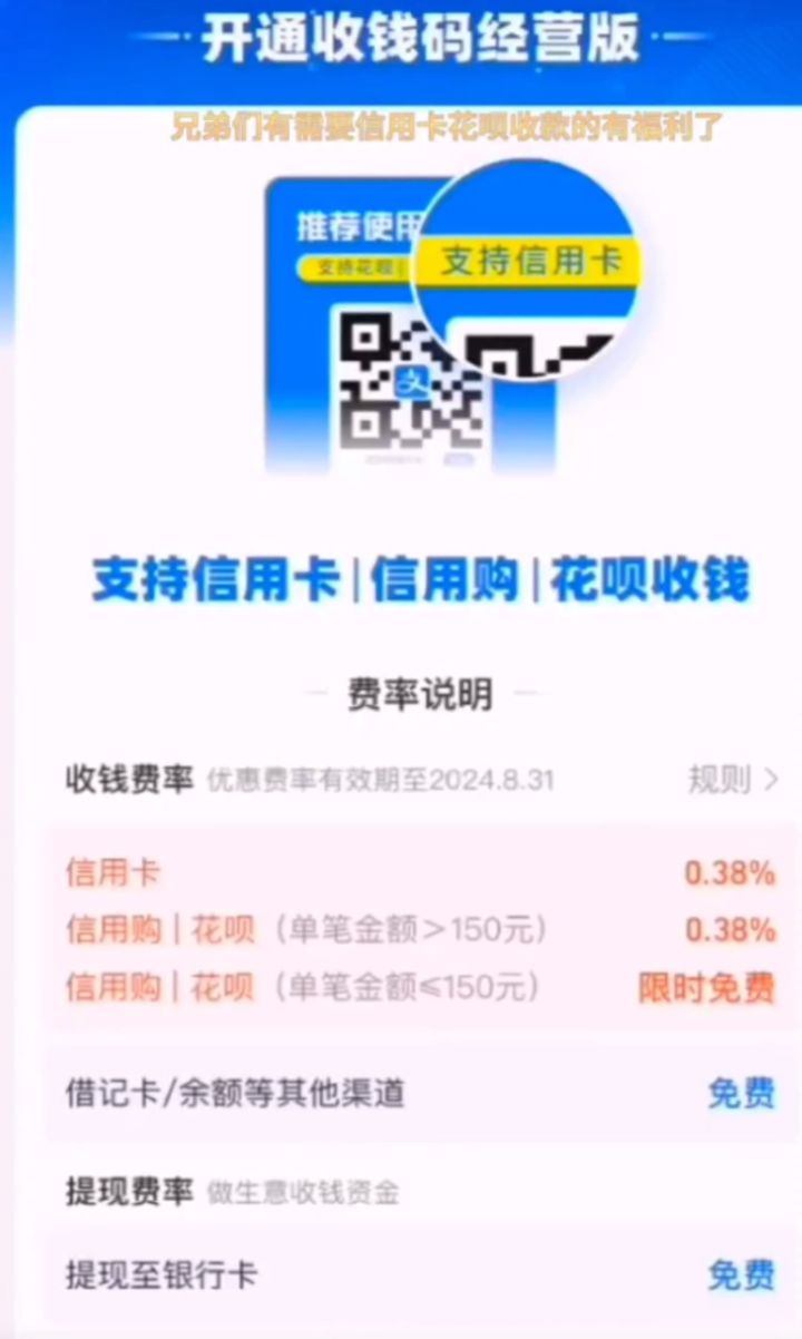 升级商家收款码按照系统提示,用户可以轻松地将个人收款码升级为商家收款码升级后的商家收款码将支持更多的支付方式,并享受商家专属的收款服务三注意事项 免费开通支付宝商家收款码的开通是免费的,用户无需支付任何费用便捷操作整个开通及申请过程简单便捷,用户只需按照提示操作即可完成功能。