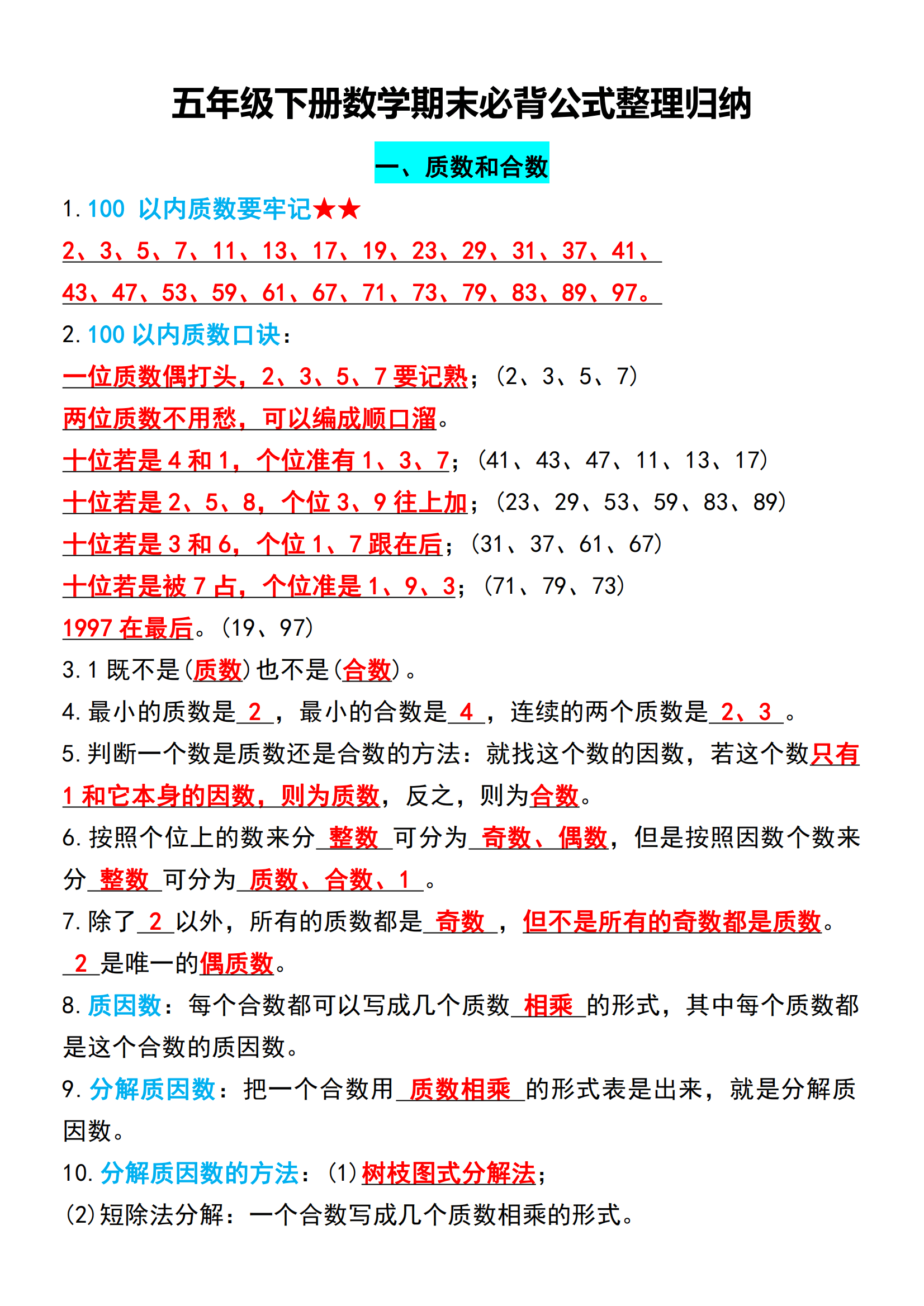 3自然数自然数集是全体非负整数组成的集合,常用 N 来表示自然数有无穷无尽的个数4互质数互质数为数学中的一种概念,即两个或多个整数的公因数只有1的非零自然数公因数只有1的两个非零自然数,叫做互质数5分解质因数每个合数都可以写成几个质数相乘的形式,其中每个质数都是。