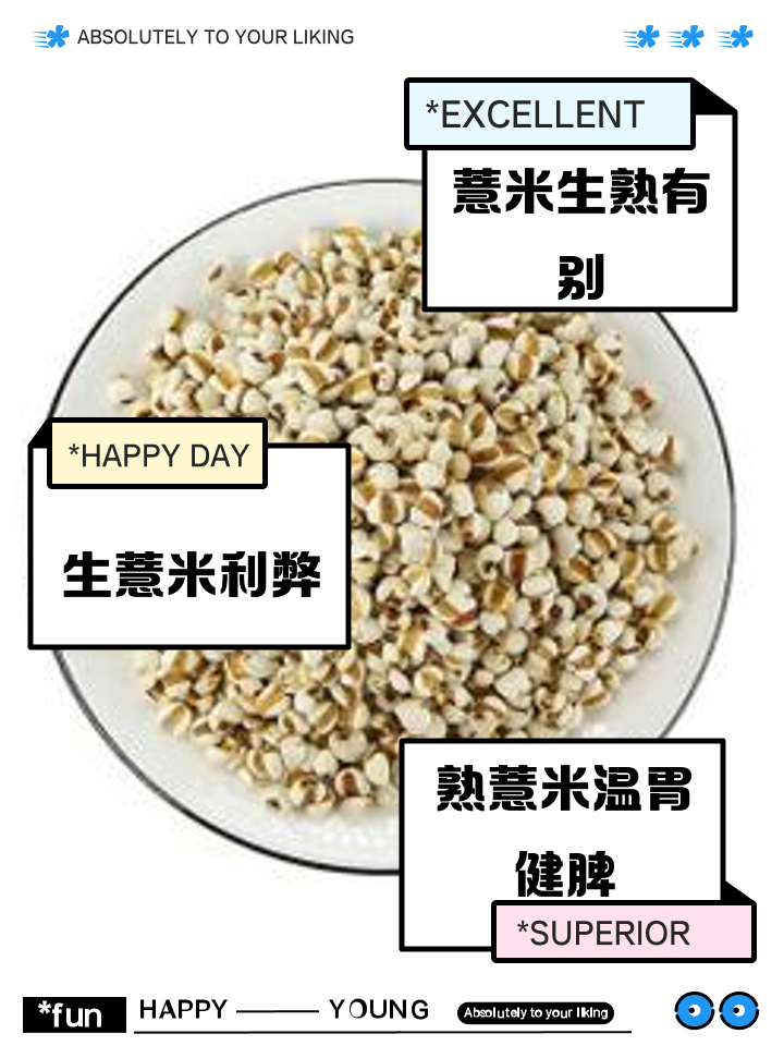 质地与香气炒熟的薏米会散发出一股焦香味,类似坚果的香气,质地也会变得比生薏米更脆硬用手轻捏时,熟薏米可能有轻微开裂或变脆的迹象大小与形态部分薏米在炒制过程中会因受热膨胀而体积略微增大,表面可能出现细小裂纹,但整体颗粒保持完整与煮熟的薏米区别如果是水煮的熟薏米,颜色会保持白色或浅米色,质地软糯而炒熟的薏米因高温脱水;薏米炒熟和生的主要区别体现在药性和功效上药性生薏米性微寒,归肺脾经大肠经熟薏米药性变得平和,不再具有生薏米时的寒性主要功效生薏米利水渗湿的功效最为显著,可以去湿除风清热排脓除痹止痛对小便不利水肿脚气和风湿疼痛等效果显著熟薏米擅长健脾止泻,是治疗。