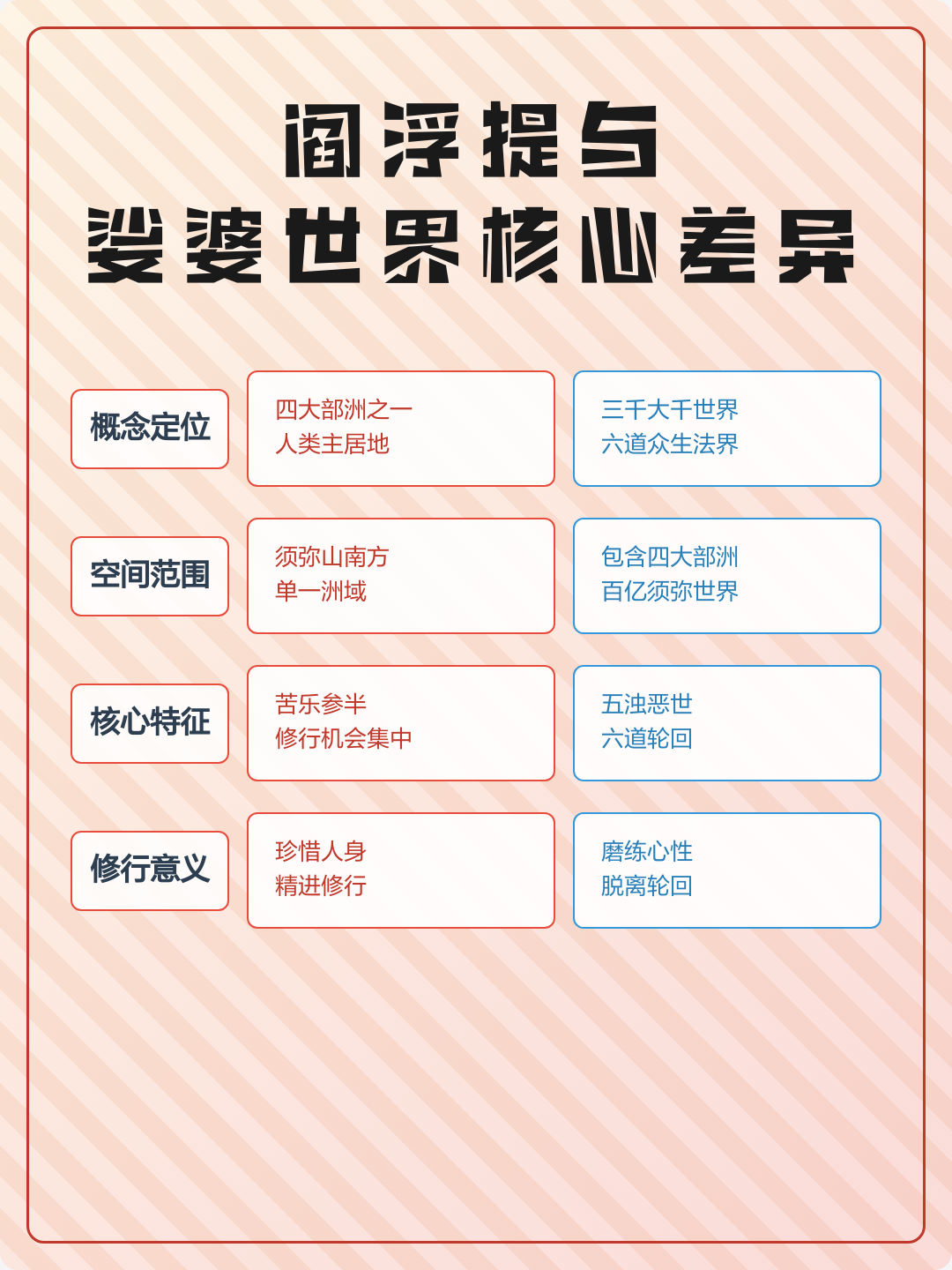 10、娑婆世界是佛教中的一个概念,指的是人们所生活的世界,也就是我们所经历的现实世界在佛经中,娑婆世界是由五大元素构成的,包括地水火风空,同时也有六道轮回,分别是天道人道阿修罗道畜生道饿鬼道和地狱道,每个道的生命体验都不同佛教认为,娑婆世界充满了痛苦与生老病死,而最终的目的就是超越娑婆世界,实现涅。