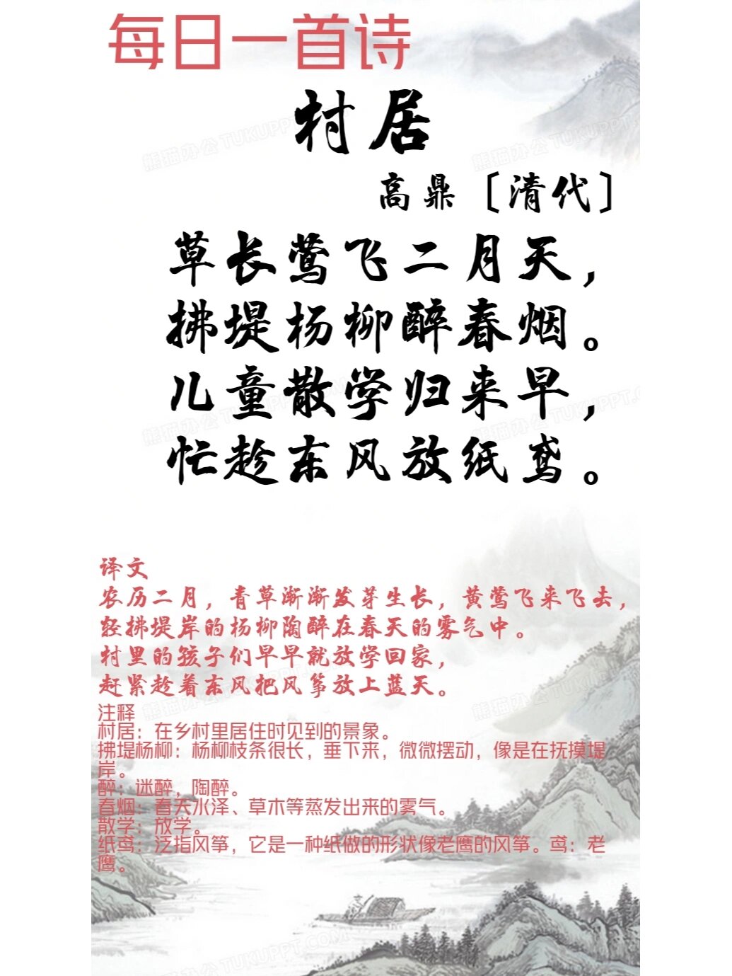 5、最后,“儿童急走追黄蝶,飞入菜花无处寻”这首诗则描述了孩子们追逐蝴蝶的场景他们追逐着黄色的蝴蝶,蝴蝶飞进了金黄的菜花丛中,孩子们一时找不到蝴蝶的踪迹,这情景充满了童真与乐趣这些诗句不仅描绘了儿童生活的趣味,也反映了古代社会的农耕文化,以及人们对于童年时光的怀念这些诗句在今天。