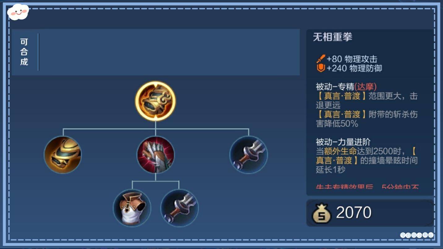 3、中后期出装顺序鞋子合成护甲鞋或者韧性鞋,根据敌方阵容来选择两个小布甲补290金币合成守护者之铠,随后做出极寒风暴,提升冷却缩减再两个小布甲合成反伤刺甲,接着补魔女斗篷提升法术防御接下来如果是顺风局就做霸者重装,均势或逆风局选择红莲斗篷,最后一件装备补血魔之怒或暗影战斧2铭。