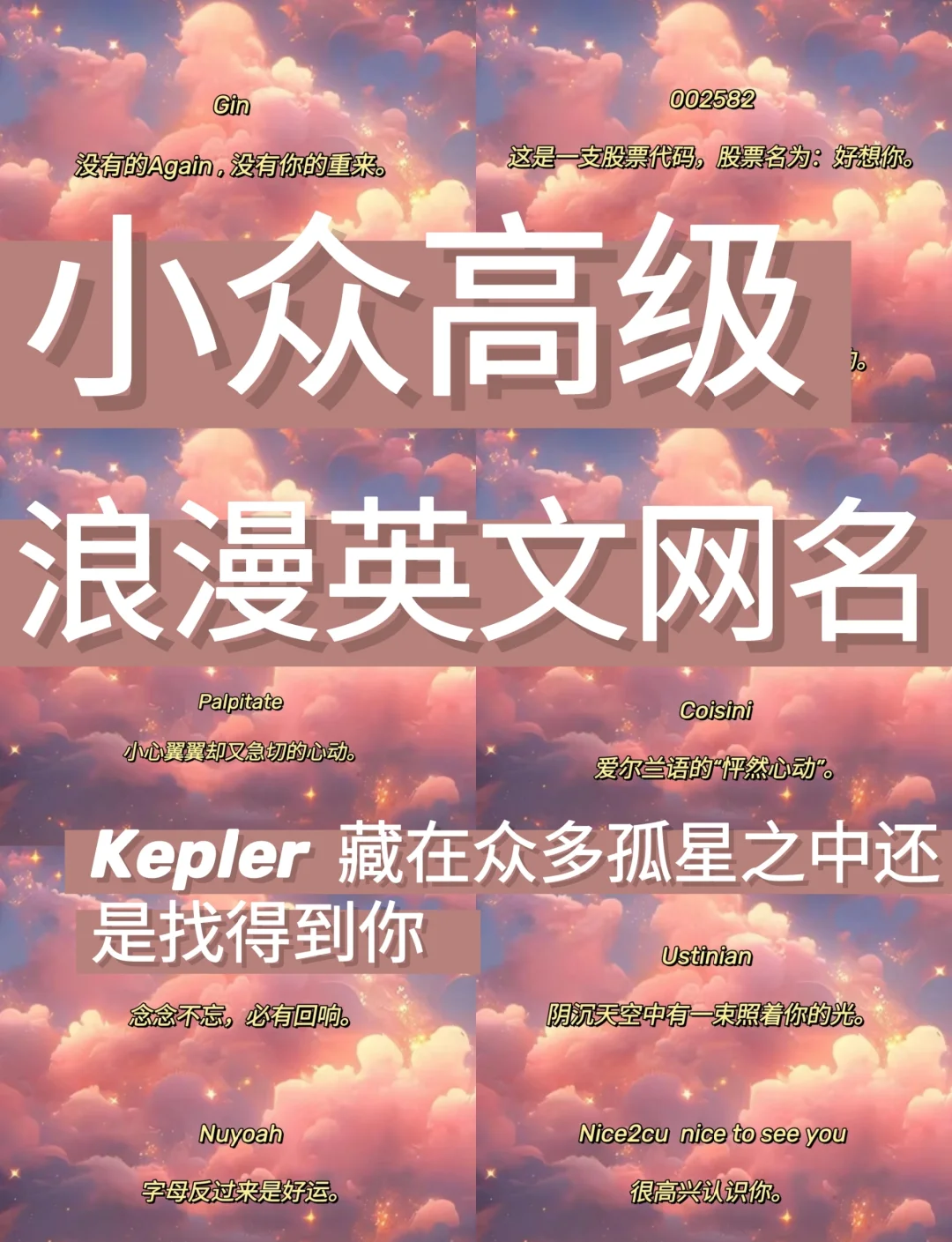 5 Imitation模仿或许是对自己模仿能力的一种自嘲,或是表现出一种从他人身上学习的谦逊态度6 Invalid Oath无效誓言带有一种对过往誓言的无奈或失望,反映出一种成长的辛酸历程7 Sincere真心直接传达出真诚待人的品质,是一个积极向上的网名选择8 Dust Heart尘心暗喻。