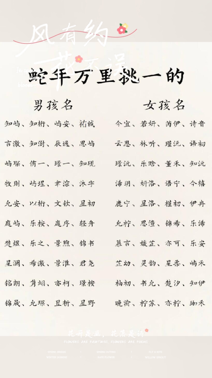 接下来是一些适合2025年属蛇双胞胎女孩的名字推荐1 灵韵灵曦 “灵”体现了属蛇的灵动与聪慧,“韵”代表优雅气质,“曦”则寓意清晨的阳光,充满希望2 妍熙妍然 “妍”表示美丽,“熙”有光明之意,“然”则给人一种自然和谐的感觉,整体名字显得温婉动人3 思晴思雨。