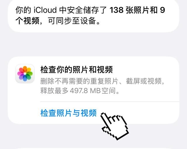 3、在这里你可以看到详细的存储分析,请点击检查照片与视频,系统会给出优化建议,帮助你识别并清理其他冗余内容。