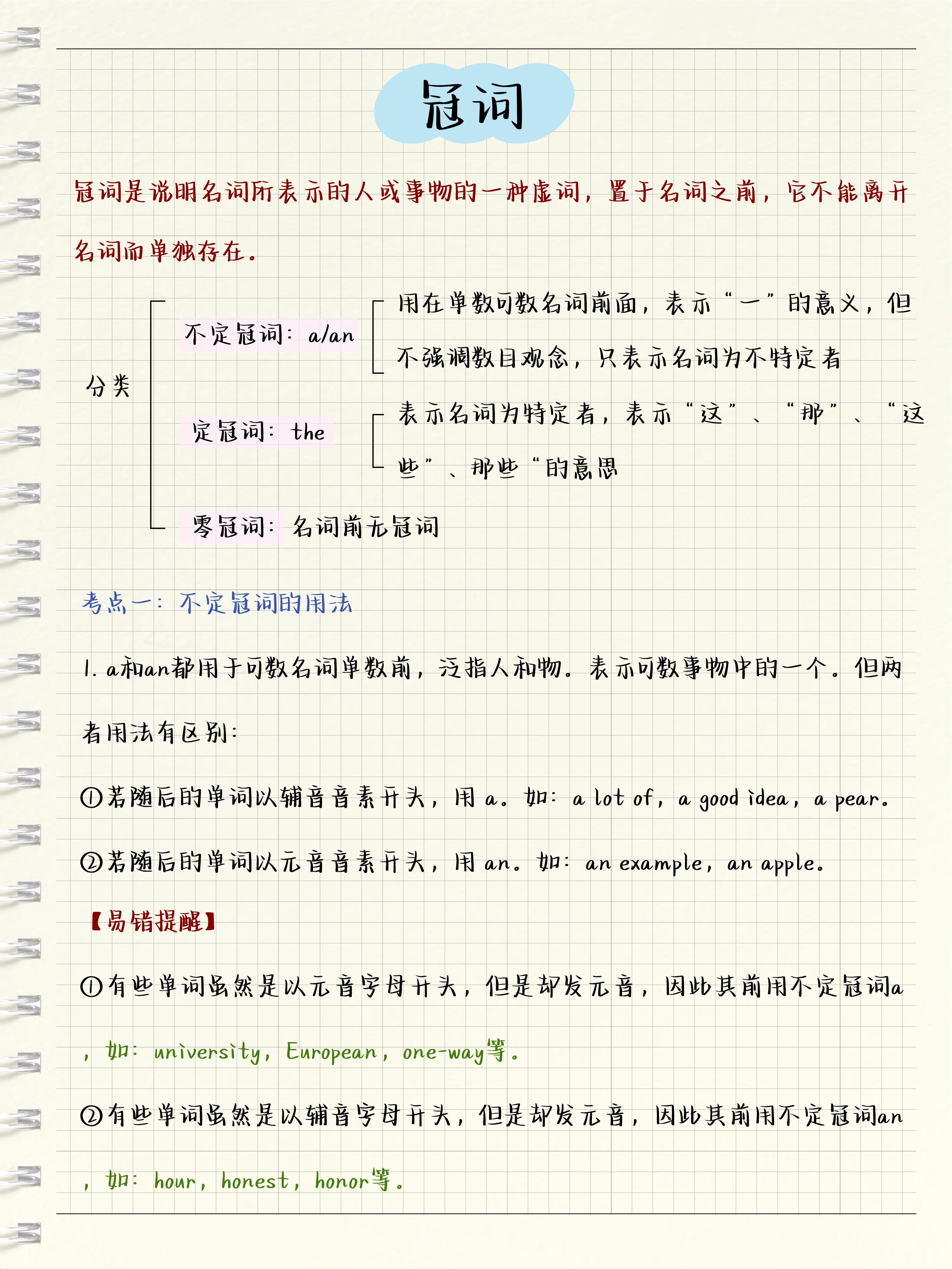 冠词口诀是什么 冠词分为定冠不定冠,不定冠词a和an,“”的含义表泛指 表示特指要用the,次序方位最高级 世上物体独一个,人或事物再次提 以下情况冠词免,学科球类三顿饭 名词复数表泛指,季节星期月份前 不定冠词a,an用法泛指 1不定冠词a an是quot一个quot的意思a用于辅音音素前,一般读作e。