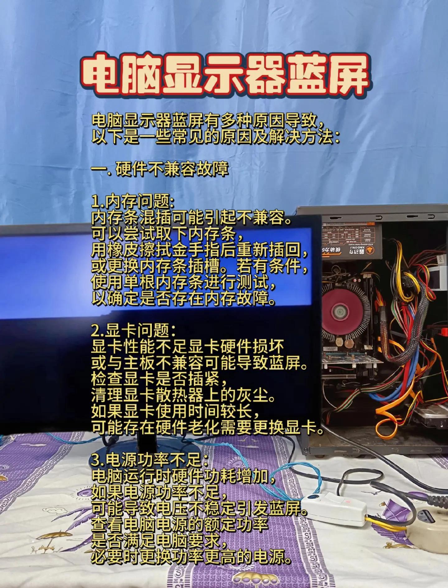 电脑蓝屏按F8无反应,可以尝试以下解决方法对于台式主机1 检查并重新插拔内存断电后,打开机箱,找到内存条,将其拔出,用橡皮擦拭金手指部分以去除氧化层或污垢,然后重新插紧,确保插入方向正确2 检查并重新插拔显卡同样地,找到显卡并将其拔出,用橡皮擦拭金手指部分,重新插紧并确保卡扣已。