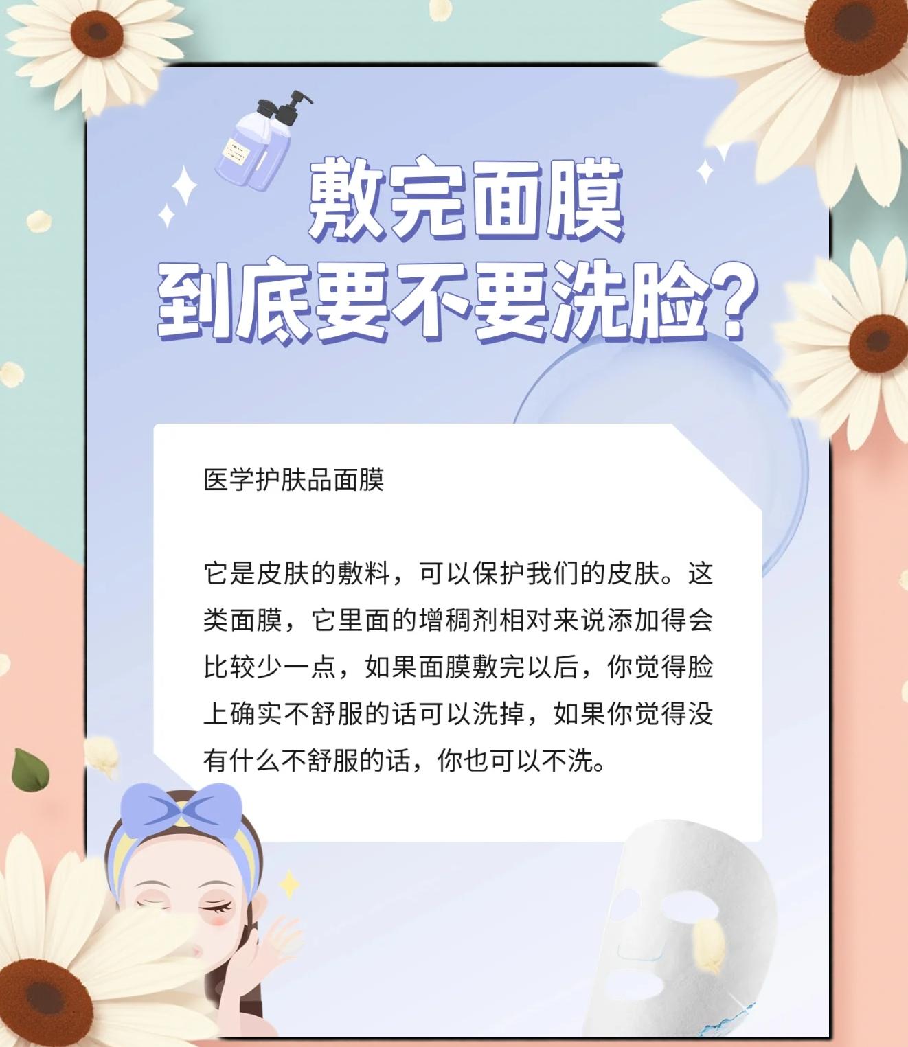 而凝胶状或免洗型睡眠面膜若在白天使用,通常需要洗脸,防止粘灰或与防晒底妆产品产生搓泥现象2 结合自身肤质选择 油性及混合性皮肤敷面膜后更需洗脸,残留的封闭性保湿成分可能加剧油脂分泌,甚至诱发闭口干性皮肤可视情况而定若精华液质地清爽可直接轻拍吸收但若精华含较多增稠剂如卡波姆等,清洁更利于皮肤透气3 考;油性皮肤敷后建议洗脸,以去除多余油脂和残留成分,防止毛孔堵塞清洁后需及时补水,避免皮肤干燥干性皮肤若面膜成分温和且无黏腻感,可保留精华液过夜,利用营养成分增强保湿但若感觉皮肤负担重,需用清水洗净敏感性皮肤首次使用前需在耳后或手腕试敏,无过敏反应后再全脸使用敷后根据皮肤。